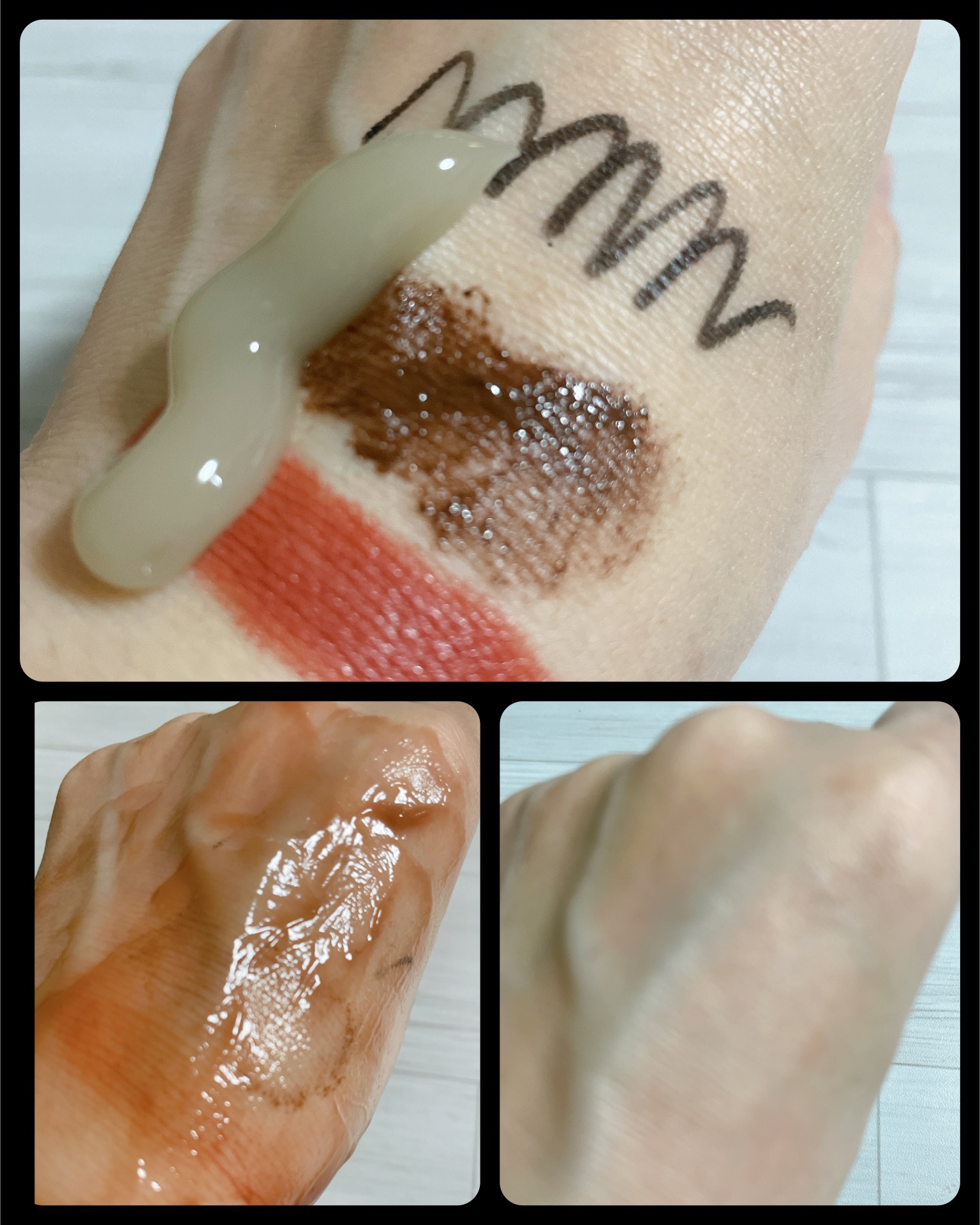 モッチスキン吸着クレンジング WHTを頂きました🥰💚 200gでたっぷり使用可能です☝️ ウォータープルーフで落書きしましたが、スルッと落ちました🙌刺激も感じず、洗い流すとサッパリしました💮 優しいシトラス系の香り🌿ハチミツ入りのせいか、つっぱる事も無くスッキリ🐝💓