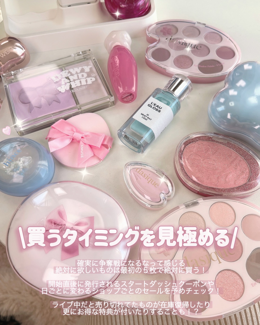 またdasiqueからすごいの出たよ💗💖💘 ピンクとハートとリボンに目がないびーこは今回もしっかりリアルバイˊ˗ ブルベ向けのカラーを11以外購入したからブルベさんはぜひ参考にしてね! 先日fweeのプリンポットも購入したのでその比較もまた早めに出すね!!🍮💗