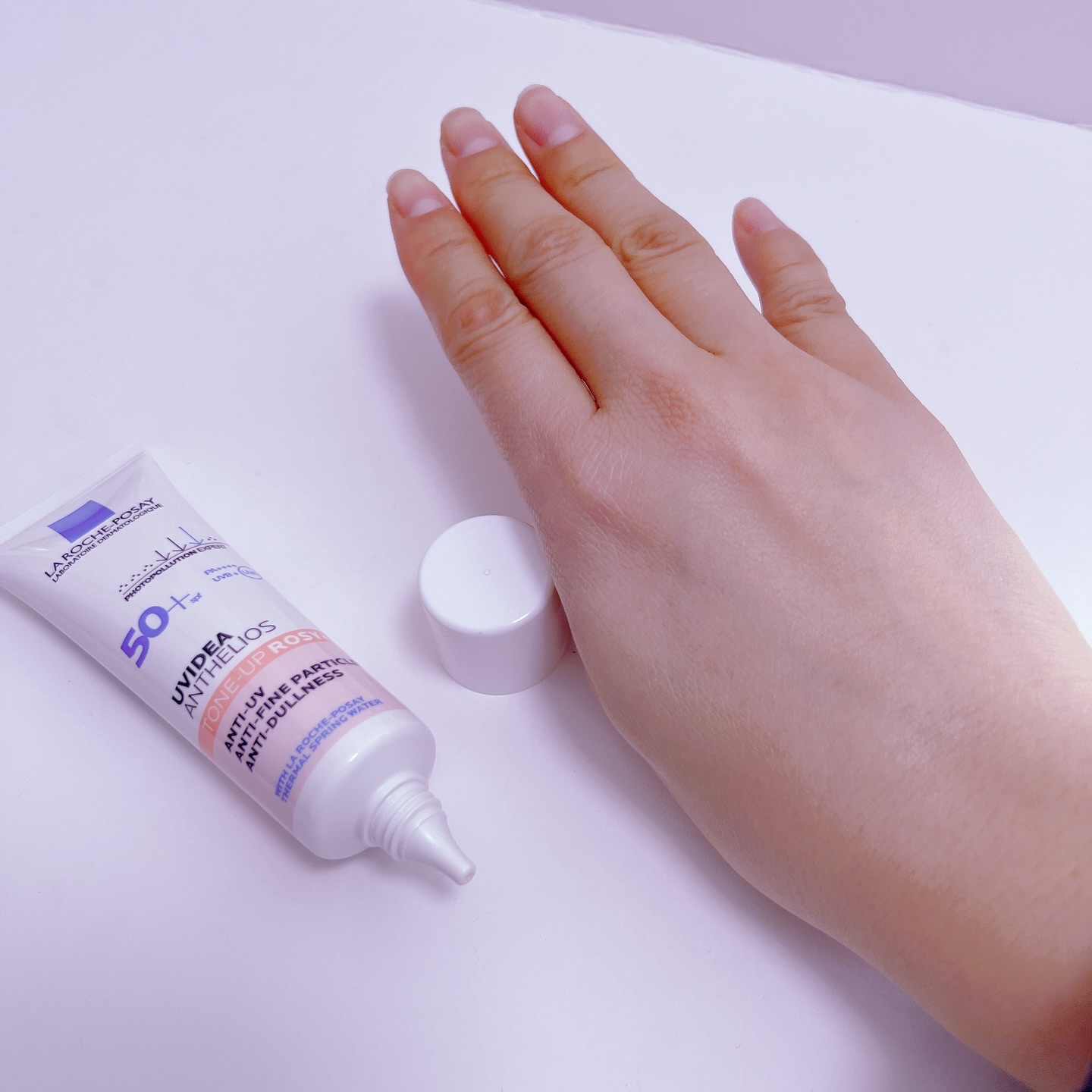 保湿力高めの下地が大好きなのでラロッシュポゼの下地はお気に入りでよく使います✨ かなりトーンアップします🤍自分は肌が黄ぐすみしやすいのでこれくらいトーンアップしてくれた方が時間がたった時にちょうどよくなります✨ 1番のお気に入りはローズです🌹肌から浮かない程よいトーンアップとほんのり血色感がよくなる所が大好きです🥰