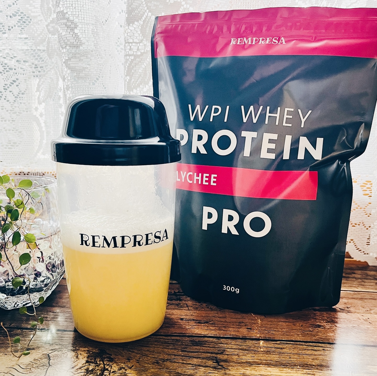 お水にさっと溶けやすい。まるでスポーツドリンク!?なジュースプロテイン『REMPRESAプロテイン PROライチ味』水でちょい振りするだけでさっと溶ける。重たくない!!ジュースみたいなプロテイン。え?ジュースですか?スポーツドリンクのようなお...