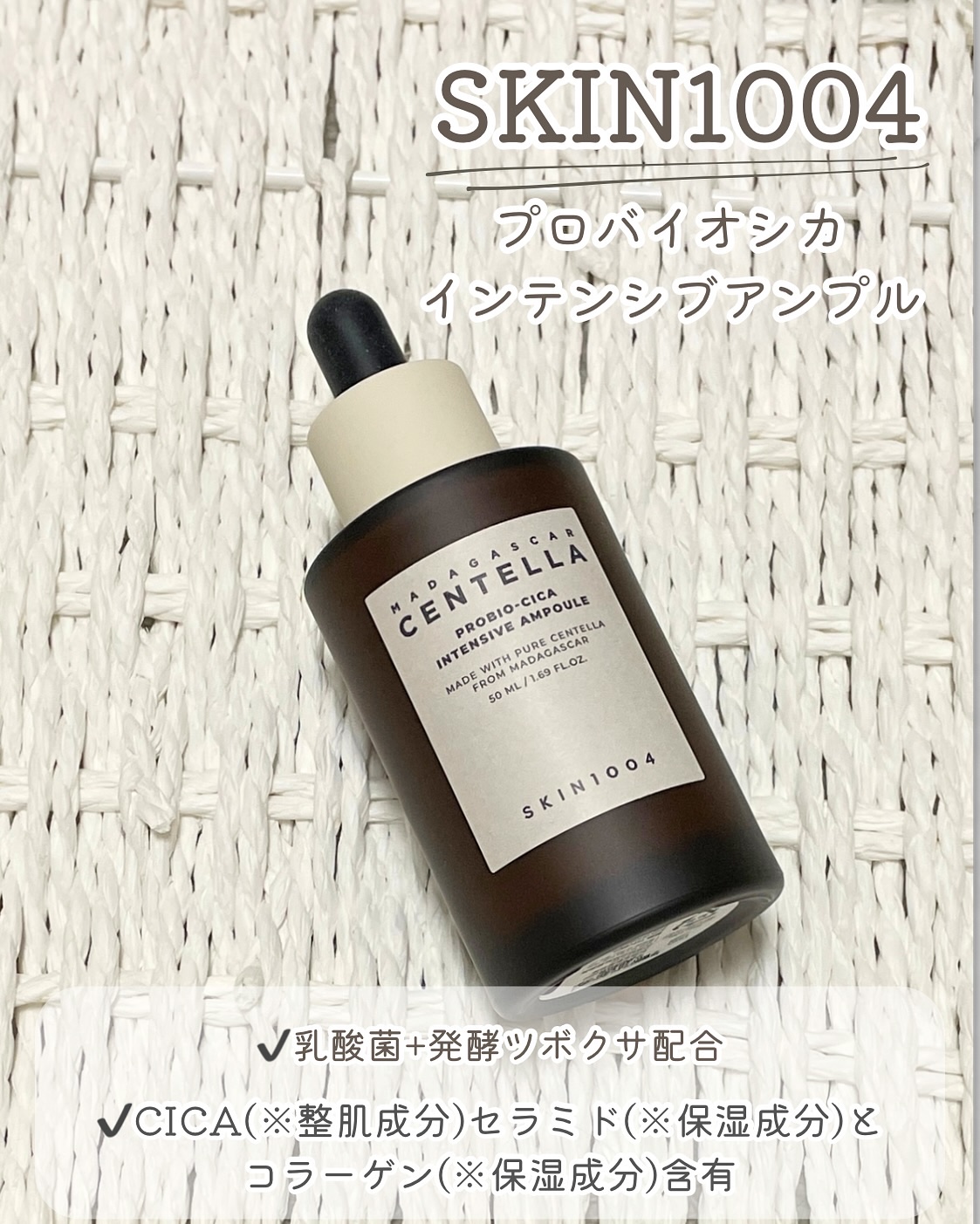 肌バリア強化!SKIN1004プロバイオシカ インテンシブアンプル✨ このアンプル、乳酸菌+発酵ツボクサで美容をサポートして、CICA(※整肌成分)セラミド(※保湿成分)とコラーゲン(※保湿成分)が肌バリアを強化。 使った後、もっちりしたテクスチャーで肌がしっとりして、長時間保湿される感じ✨ ベタつかず、高保湿で軽やかな使い心地が気に入ってます😊 肌バリアをしっかりケアしたいなら、これ試してみて!絶対おすすめだよ〜💖