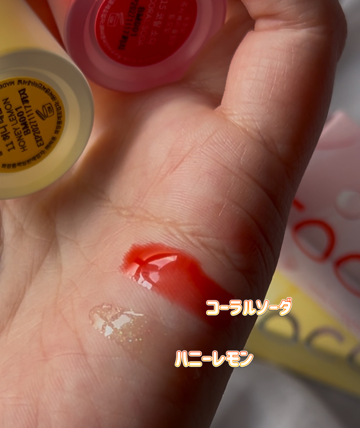 ころんとしたパケかわいすぎ♡ どちらもほんのり甘い香りがするよ♪ 塗ると、唇にガラス玉のような光沢ができて、うるうるの唇に。 プランプ効果でぷっくりボリューム唇に💋 テクスチャーはなめらかでしっとり、ねっとりしていて、うるツヤリップに。 自然由来の高保湿オイルベースってところもうれしいね✨