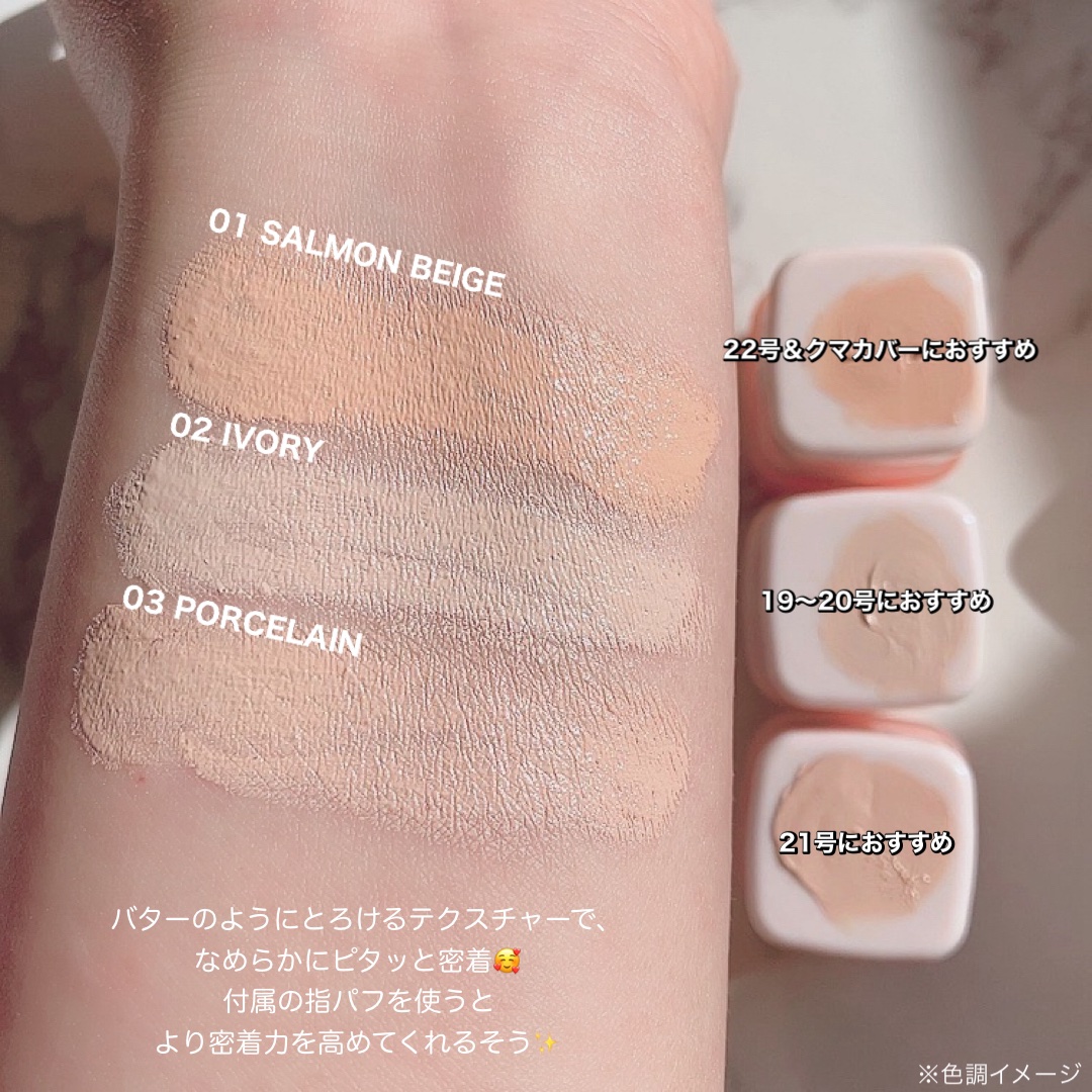- バターが溶け込むようにお肌になじみ、毛穴の凹凸を埋めてなめらかなお肌に仕上げるプライマー効果を持ったコンシーラー。 毛穴が気になりやすい頬の三角ゾーンをカバーし、つるりとなめらかなほっぺを演出します。 <00 ピンクブライト> 明るいピンクベースのベージュカラー。 <01 サーモンベージュ> ほのかに赤みを帯びていて落ち着いたトーンのベージュカラー。 <02 アイボリー> 透明感のある明るいアイボリーベースのニュートラルベージュカラー。 <03 ポーセリン> 血色感のあるピンクベースのクールニュートラルベージュカラー。 <Qoo10内「AK BEAUTY OFFICIAL」公式ショップにて2025年2月28日(金)先行発売>