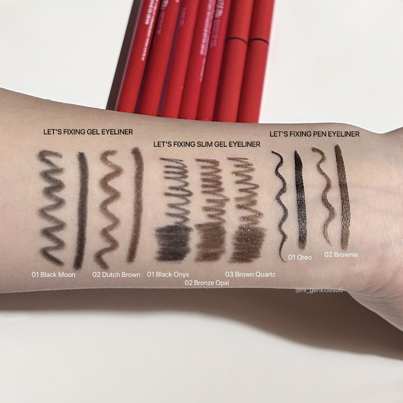 ✍🏻韓国DAISOで大人気?MERZYアイライナー3種類を比較レポってみた✍🏻MERZY●レッツフィクシングペンアイライナー01オレオ/02ブラウニー●レッツフィクシングジェルアイライナー01ブラックムーン/02ダッチブラウン●レッツフィクシ...