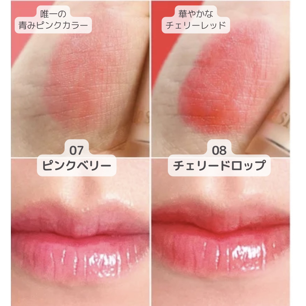 透け感のあるテクスチャーはバームのようなベタつきはなく、サラッと使えるんです☝️✨ ぷるぷるゼリーみたいなカラーのかわいいパケはスリムで持ち歩きにぴったり。 全体的にシアーで柔らかい仕上がりなので普段使いしやすいですし、持ち歩いてお直しリップとしても良さそう✨