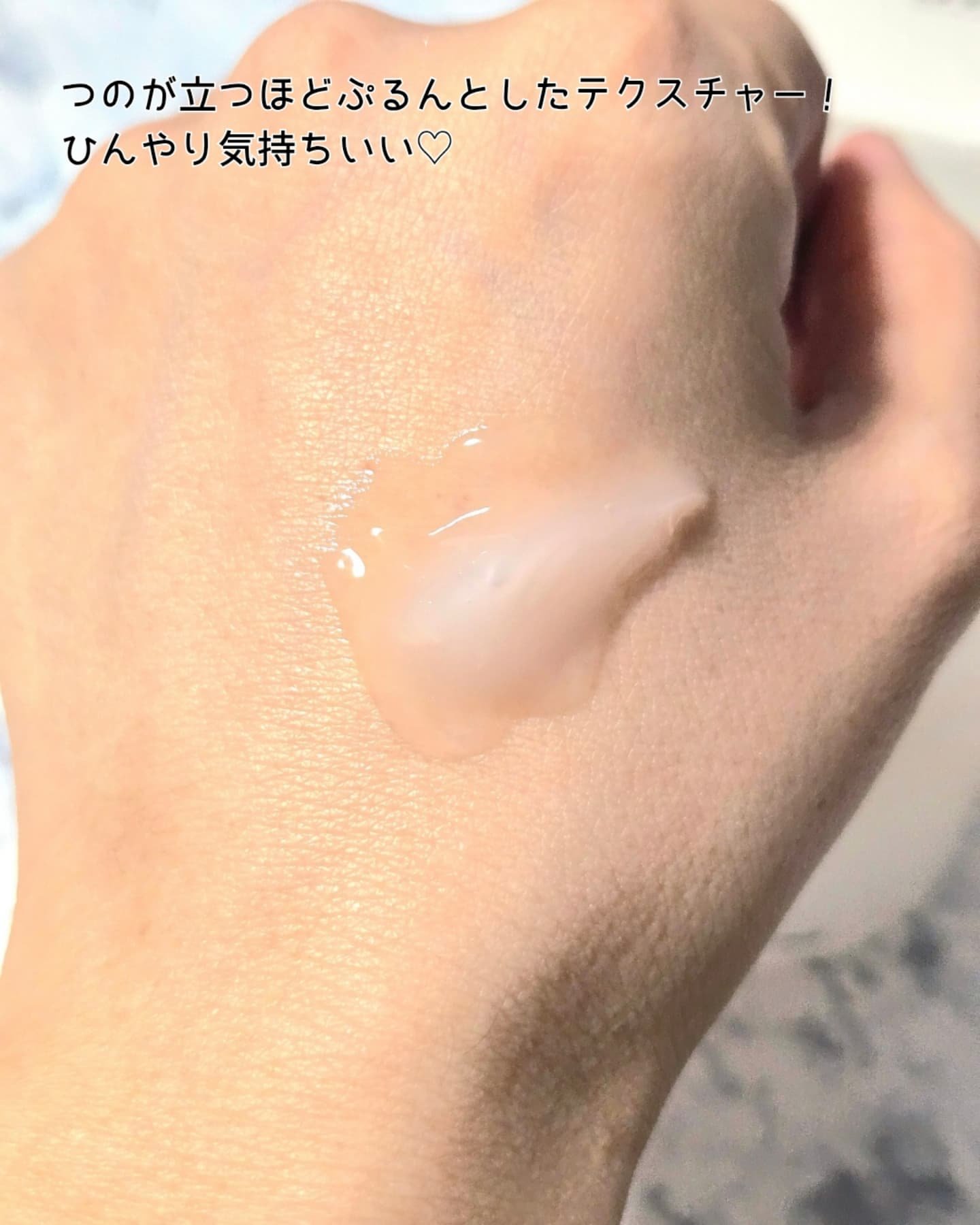- 水、DPG、ハマメリスエキス、セイヨウシロヤナギ根皮エキス、ナイアシンアミド、ヒアルロン酸Na、ポリグルタミン酸、ウラルカンゾウ根エキス、チャ葉エキス、ローズマリーエキス、ツボクサエキス、ローマカミツレ花エキス、オウゴン根エキス、イタドリ根エキス、カルボマー、アルギニン、(アクリロイルジメチルタウリンアンモニウム/VP)コポリマー、エチルヘキサン酸セチル、(C12-14)パレス-12、グリセリン、ラウリン酸ポリグリセリル-10、ミリスチン酸ポリグリセリル-10、BG、1,2-ヘキサンジオール、カプリリルグリコール、ダイウイキョウ果実エキス、EDTA-2Na