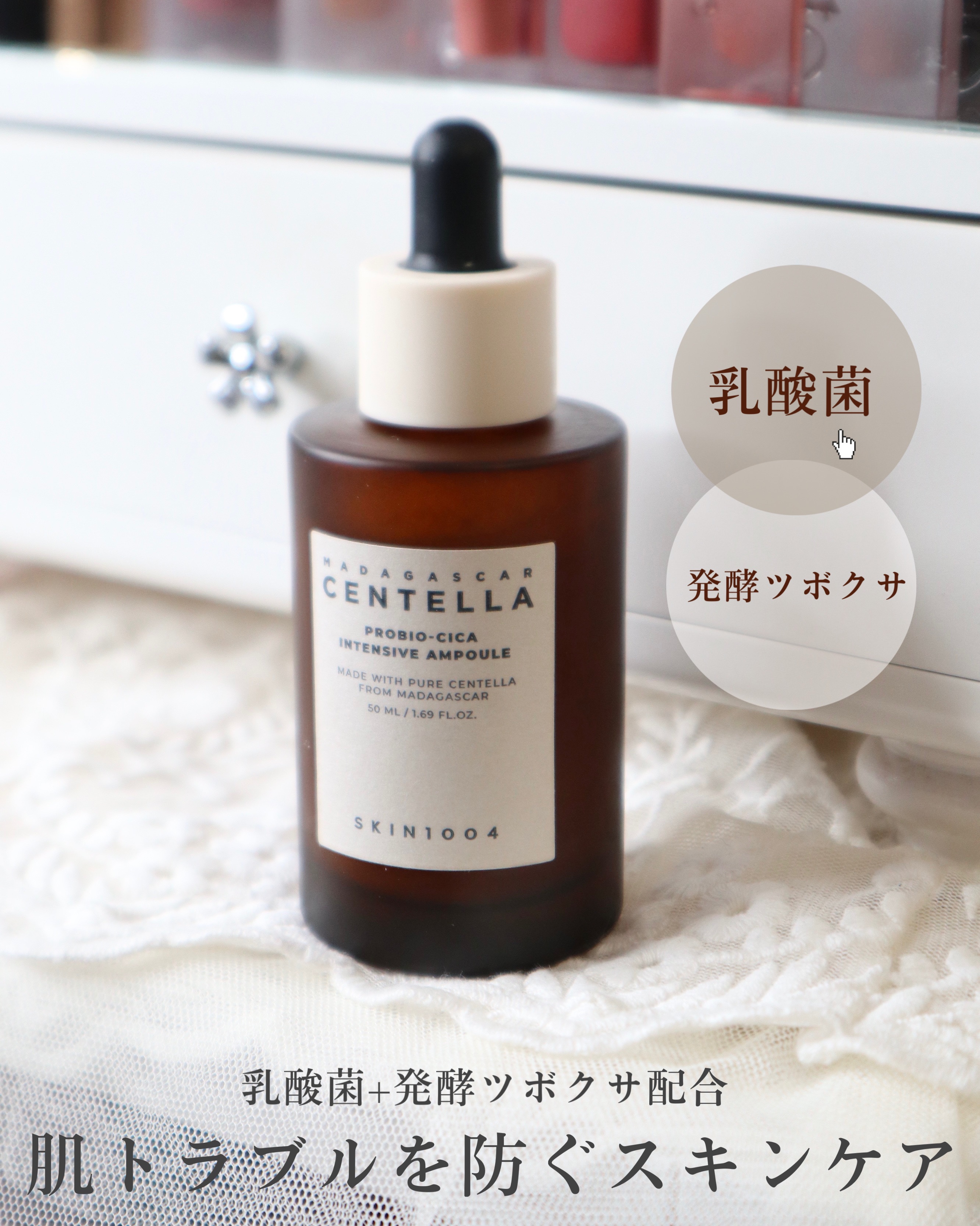 肌バリア強化!SKIN1004プロバイオシカ インテンシブアンプル✨ このアンプル、乳酸菌+発酵ツボクサで美容をサポートして、CICA(※整肌成分)セラミド(※保湿成分)とコラーゲン(※保湿成分)が肌バリアを強化。 使った後、もっちりしたテクスチャーで肌がしっとりして、長時間保湿される感じ✨ ベタつかず、高保湿で軽やかな使い心地が気に入ってます😊 肌バリアをしっかりケアしたいなら、これ試してみて!絶対おすすめだよ〜💖