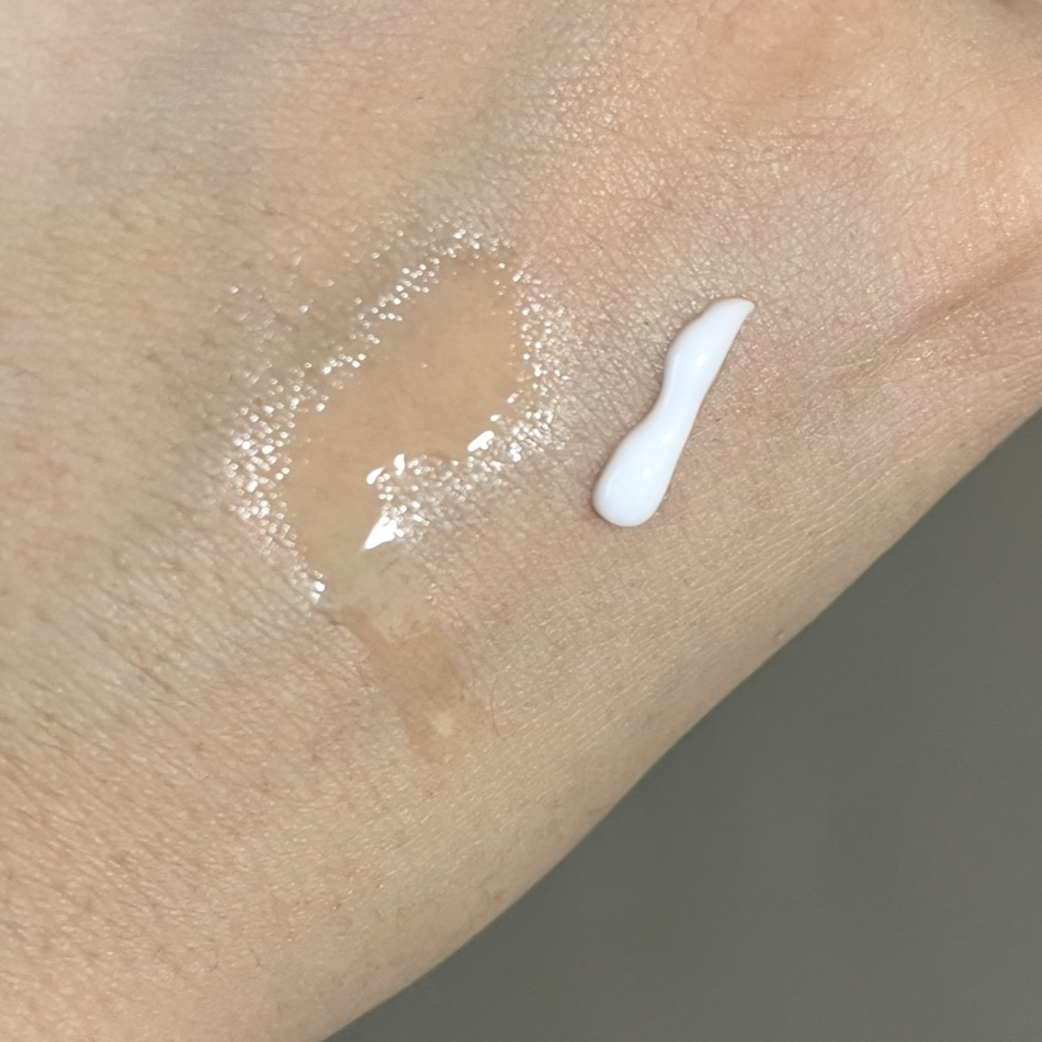 ジェルのようなテクスチャで塗り心地⭕️ 薄く伸び広がり、きしみやベタつきは感じません。 ペールピンク色でナチュラルに明るくトーンアップしました。 あくまでも自然、白くはなりません🤍 1つ目は香り。 クリアローズの香りがついてますが、これがかなり好みが分かれるかも。 2つ目はメイク後の乾燥。 これ単品だと適度にしっとり感があるけど、上からメイクするとすごく乾燥を感じました… 単品使用の時は汗をかいても白浮きしないけど、メイクを重ねると汗が白っぽく、粉っぽくなる💦