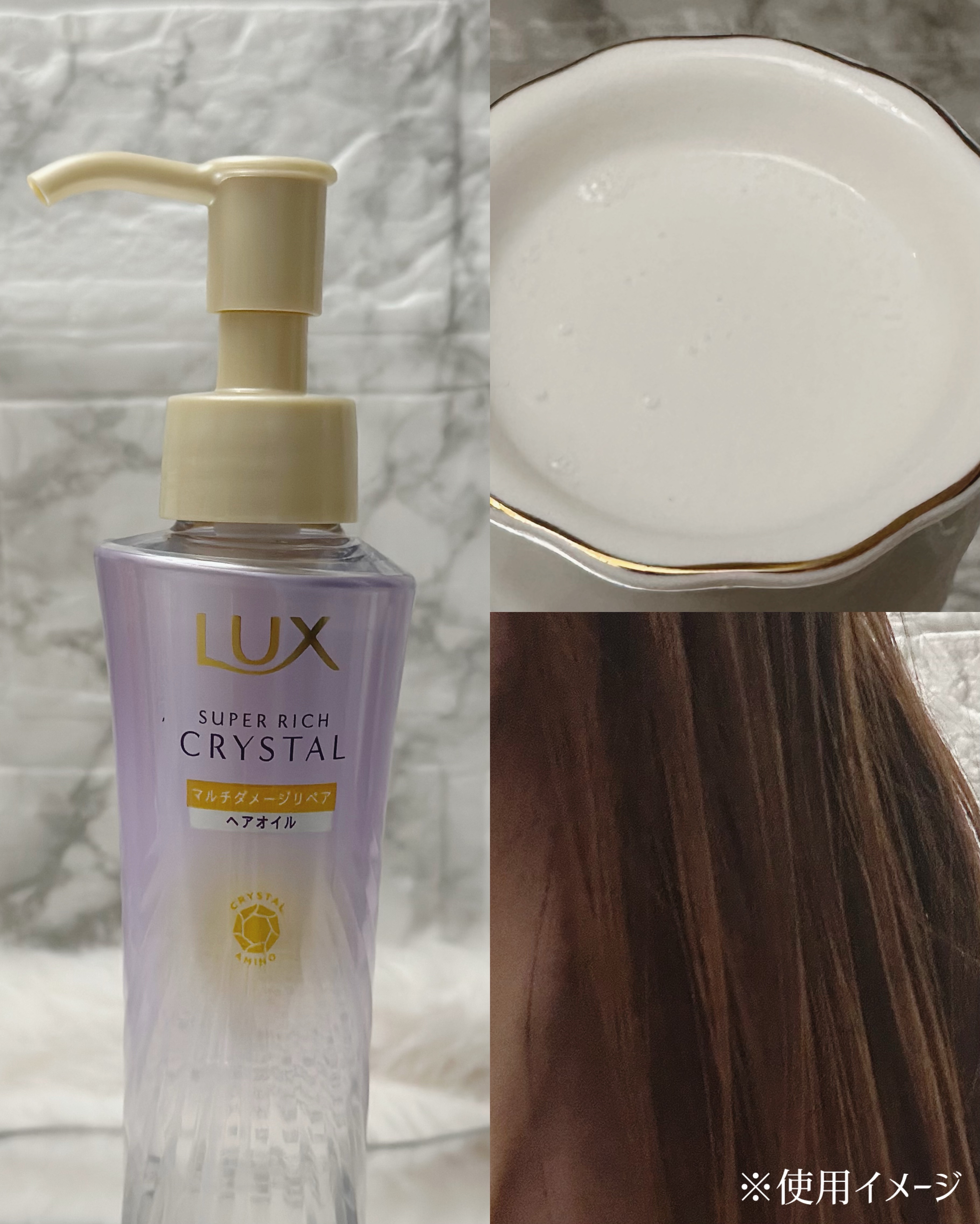 - 瞬間。クリスタルツヤ髪へ。 日常生活で受けやすい7大ダメージ(熱、摩擦、UV、カラーリング、ブリーチ、乾燥、パーマによるダメージ)を集中補修。 それを可能にした3つのLUXの先端技術。 ①約1/700*1極小クリスタルアミノ*2配合で、髪の奥まで浸透リペア ②クリスタルアルガンオイル*3配合で、外部刺激(熱/UVによる乾燥/摩擦)から徹底プロテクト。 ③髪の構成と同じ17種のアミノ酸*4配合により、まばゆいほど光をふりまくツヤ満ち髪へ。 総合的に髪の7大ダメージにアプローチするマルチダメージリペアシリーズはこんな方にオススメ! ✔髪がよく絡まるようになった ✔ツヤがなくなってきた ✔枝毛・切れ毛が気になる 枝毛・切れ毛を防ぎ、ツヤめくなめらかな髪へ導きます。 *1:キューティクルの厚さとクリスタルアミノの分子サイズの比較 *2:セリン(補修成分) *3:アルガニアスピノサ核油(毛髪保護成分) *4 アルギニン、アスパラギン酸、トレオニン、グルタミン酸、セリン、プロリン、グリシン、アラニン、シスチン、チロシン、フェニルアラニン、ヒスチジン、リシン、バリン、イソロイシン、メチオニン、ロイシン:補修・保湿成分
