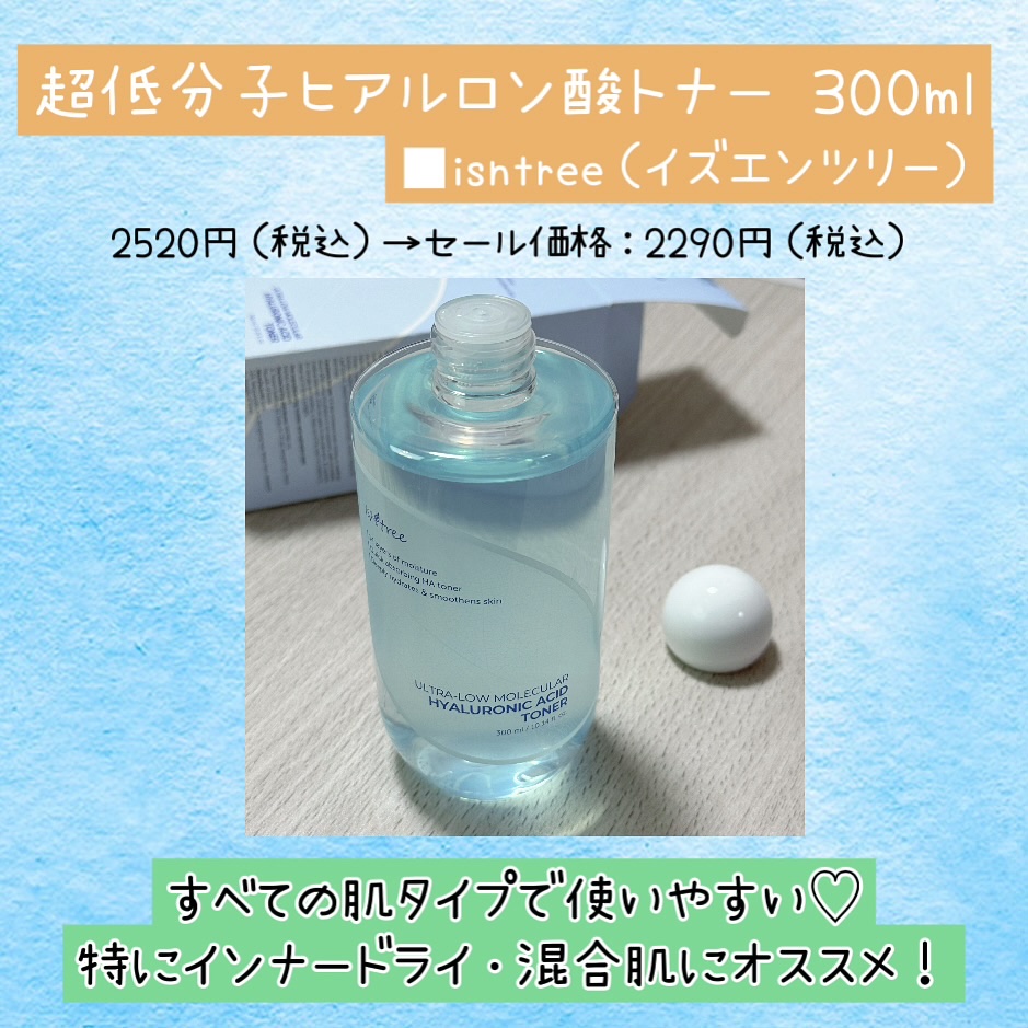 Isntree ヒアルロン酸トナー | 2,112円 |