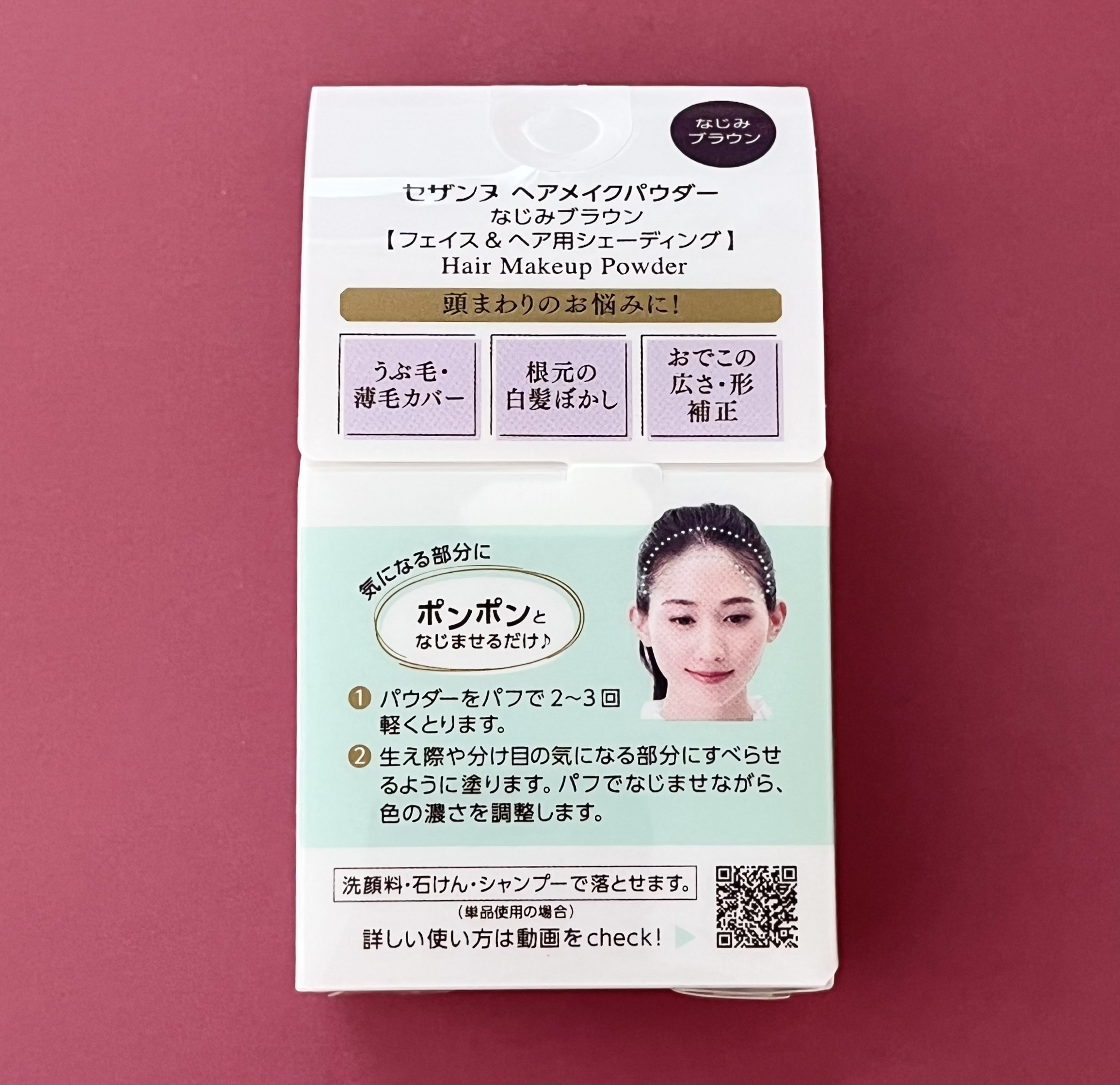 - 薄毛・根元の白髪を自然にカバーするヘア用パウダー。 濃さの調整がしやすい絶妙な発色で、まるで元々髪の毛があるような自然な仕上がり。薄毛をカバーすることで小顔効果も。 10種の美容保湿成分配合。石鹸、洗顔料、シャンプーで落とせます。(※単品使用時) ピンポイントで塗りやすい、小さめパフを採用。