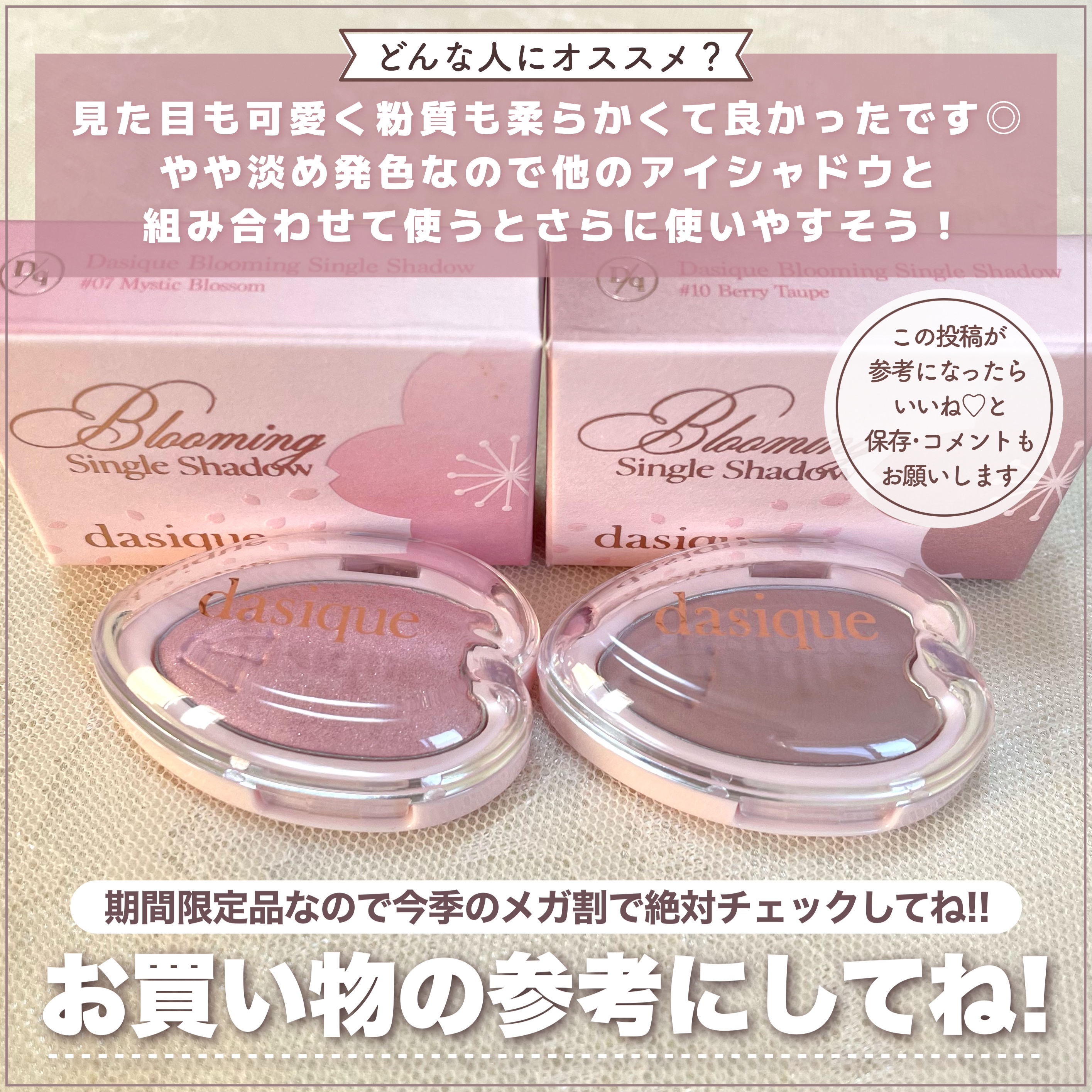 \【デイジーク新作】春爛漫!桜エディションがエモい🌸🩷/今回は、#デイジークピンクブロッサムコレクション31ラブブロッサムと、ブルーミングシングルシャドウ02・07・08・09・10のレビューです!*パケや使用感などの詳細は、 画像に記載して...