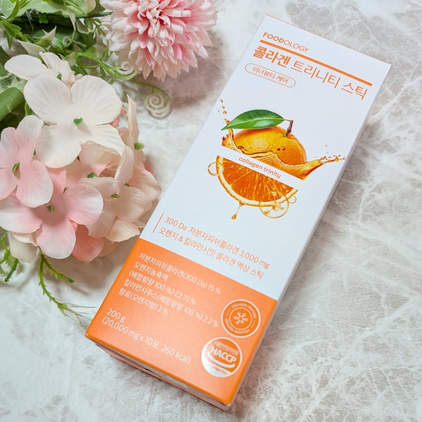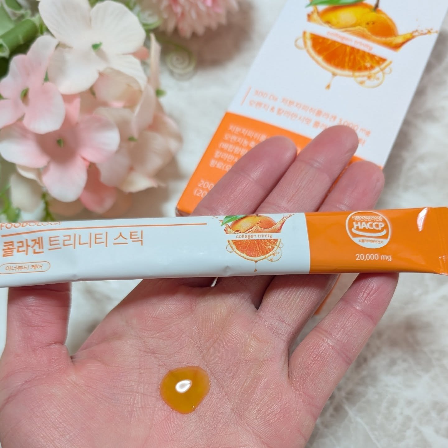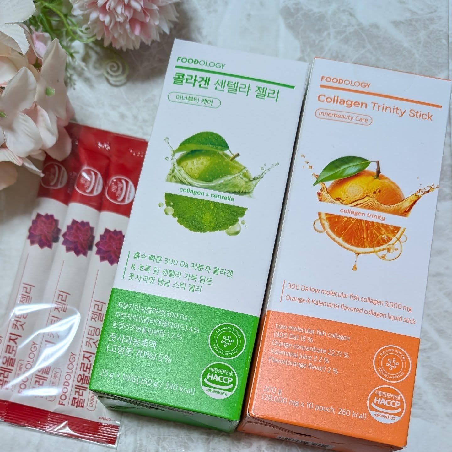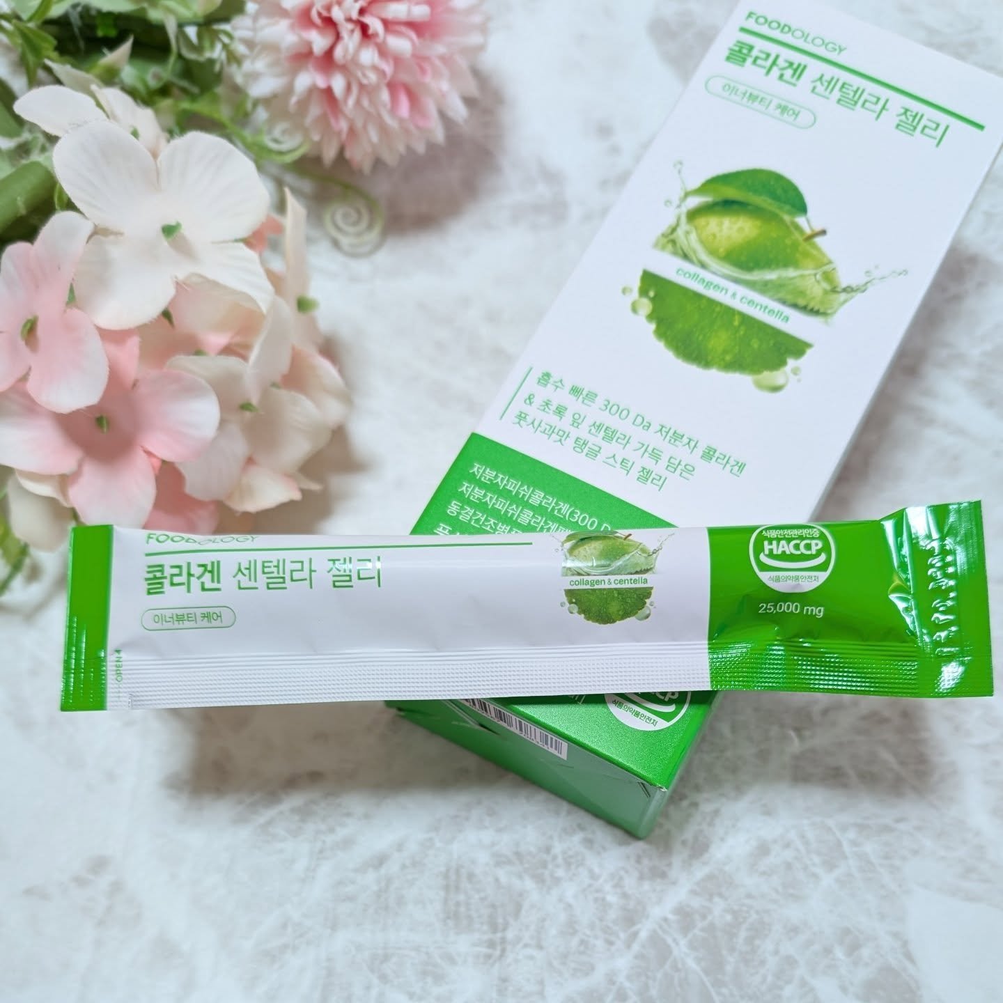 韓国オリーブヤング1位・Qoo10 1位のダイエットで有名なフードオロジーから肌ケアの新商品が発売✨ コラーゲンとセンテラ(ツボクサ:シカ)で潤いとハリのあるしっとり肌に⭐️ 青りんご味のぷるぷるしたコラーゲンゼリーですごく美味しいです🥰 高合量コラーゲンで弾力ケア💗 ぷりぷり感のあるお肌に⭐️ オレンジ味の液状タイプ🍊濃いオレンジジュースのような味で飲みやすかったです☺️