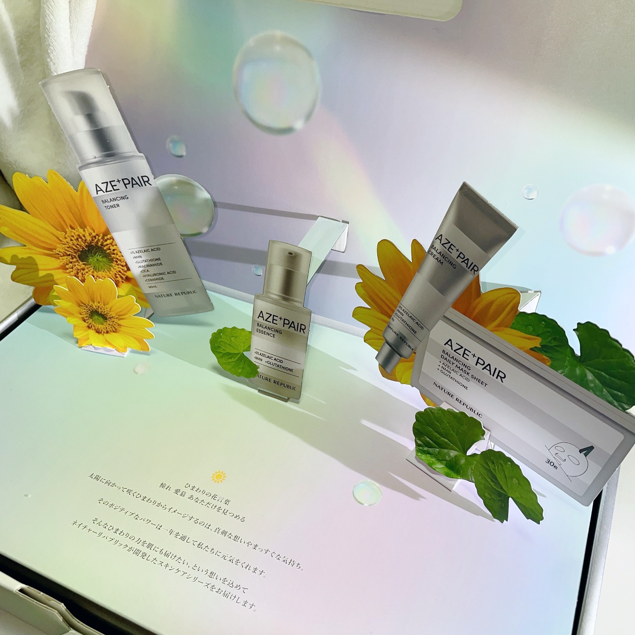 ネイリパのアゼライン酸(*1)配合の人気シリーズ🌟 シリーズ一式に純度99%のアゼライン酸が配合されているよ☺️✨ さらさらのテクスチャでレイヤリングもしやすい化粧水🫧 ポンプ式なので使いやすいのも🙆♀️✨ デイリーシートマスクは柑橘系の香り🌿 液だれせず密着力があり外した後のベタつき感もないです✨