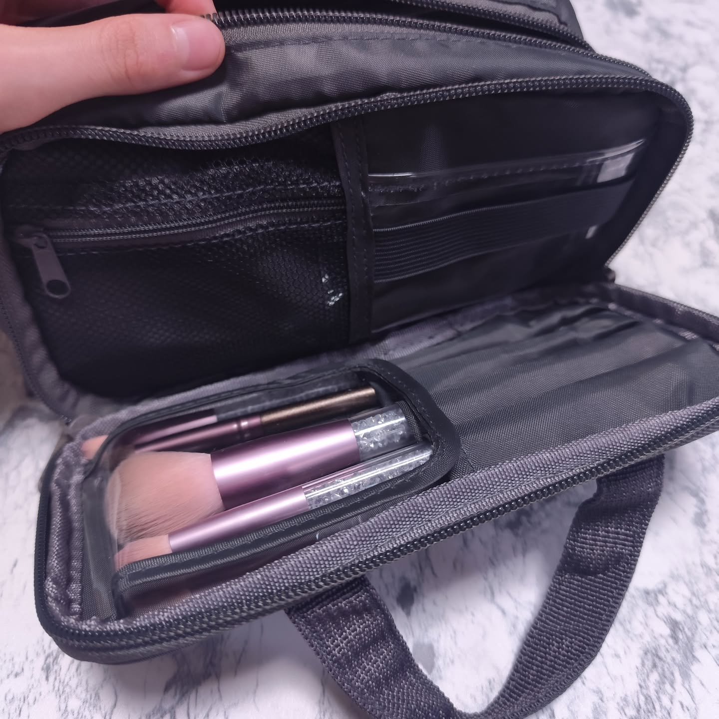 | 化粧ポーチランキング第2位 | 1泊分ならスキンケアもコスメも入りそう✨ チャックがゴールドで、高級感ある🥺 | 詳細を見る | ||