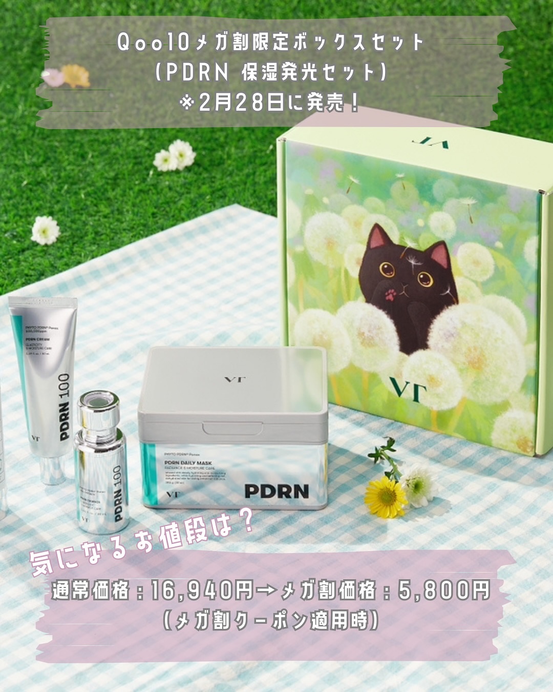 VTからQoo10メガ割限定ボックスセット登場🎁 ◾︎PDRN エッセンス100 肌に弾力を与え、ツヤ感溢れる発光肌に✨ 肌にハリ・ツヤを与えてしっとりと保湿ケア☺️ 販売個数1620万個突破!ベスコス常連のVTのシートマスクから話題のPDRN入り登場! 最大66%割引ととってもお得なので是非チェックしてね🫶🏻