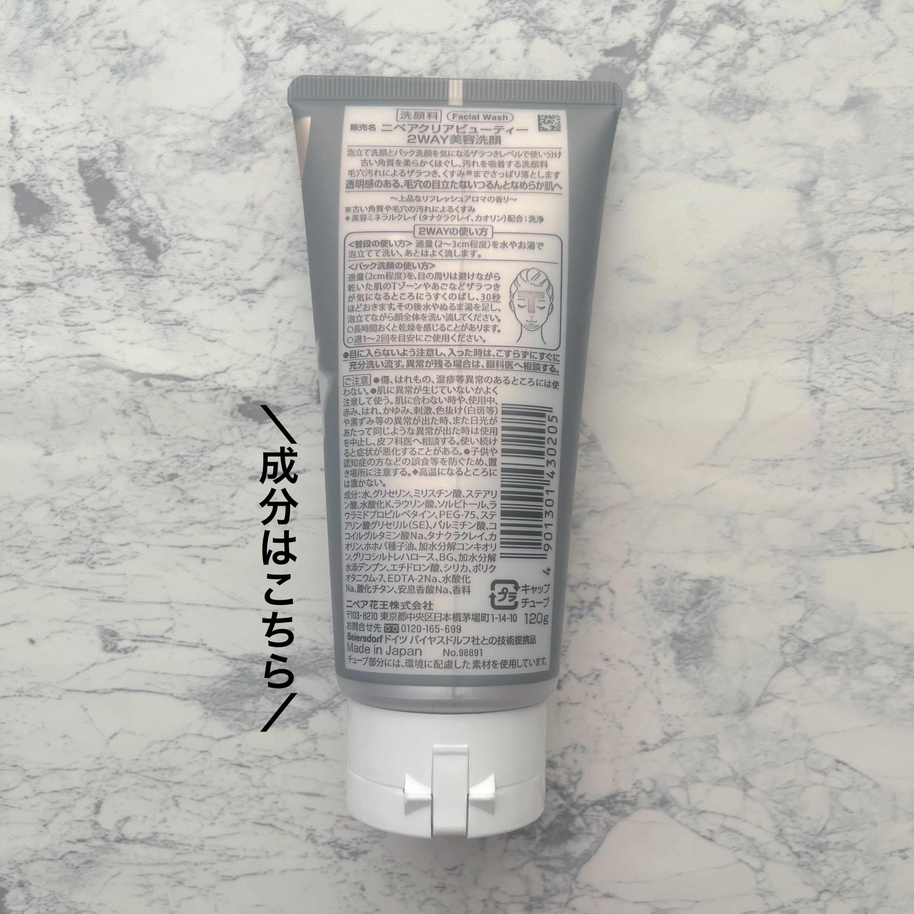 - ※商品名変更(旧名:ニベア クリアビューティー2WAY美容洗顔)に伴い、商品パッケージを順次リニューアル。尚、これにかかる商品の返品・交換は承っておりません。 気になるザラつきレベルに合わせて洗い分け。 毎日の汚れには泡でしっかり。 ザラつき気になる日はパックでごっそり。 古い角質を柔らかくほぐし、汚れを吸着する洗顔料。 毛穴汚れによるザラつき、くすみ*までさっぱり落とします。 透明感のある、毛穴の目立ちにくいつるんとなめらか肌へ。 ●美容ミネラルクレイ配合:タナクラクレイ、カオリン(洗浄) ●リッチホワイトパール保湿成分配合:ホホバオイル、加水分解コンキオリン *古い角質や毛穴の汚れによるくすみ