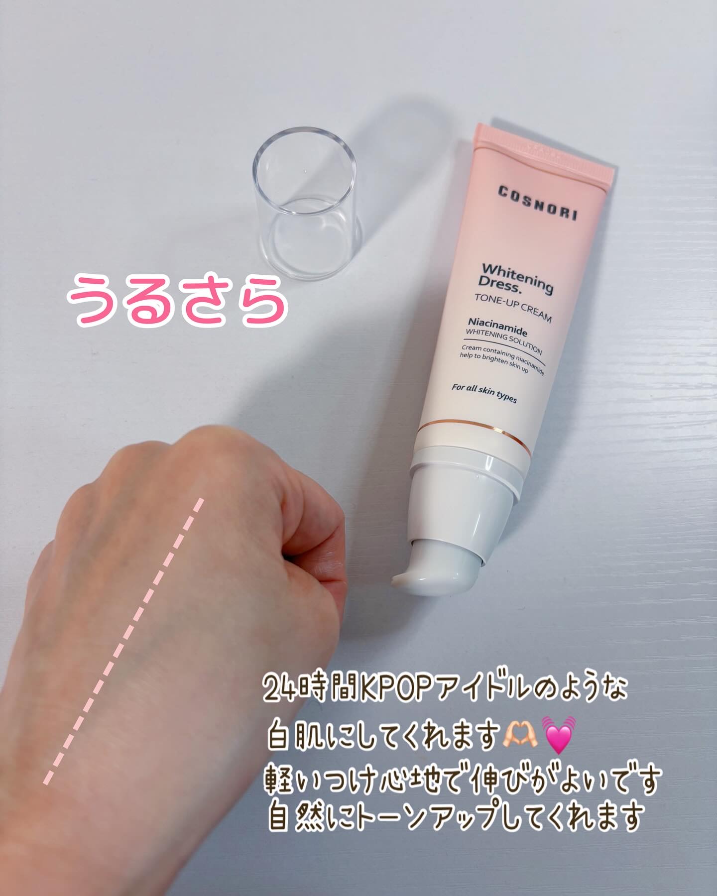 元から色白肌のようにナチュラルにトーンアップしてくれてお顔にも全身にも使用できる万能クリーム◎ 伸びも良くお肌にスッと馴染んでくれて密着力も高いのでお洋服が汚れにくいのも嬉しいポイント✊🏻✨ #COSNORI #コスノリ #Qoo10 #ホワイトニングドレストーンアップクリーム #トーンアップ下地 #トーンアップ #ノーファンデ