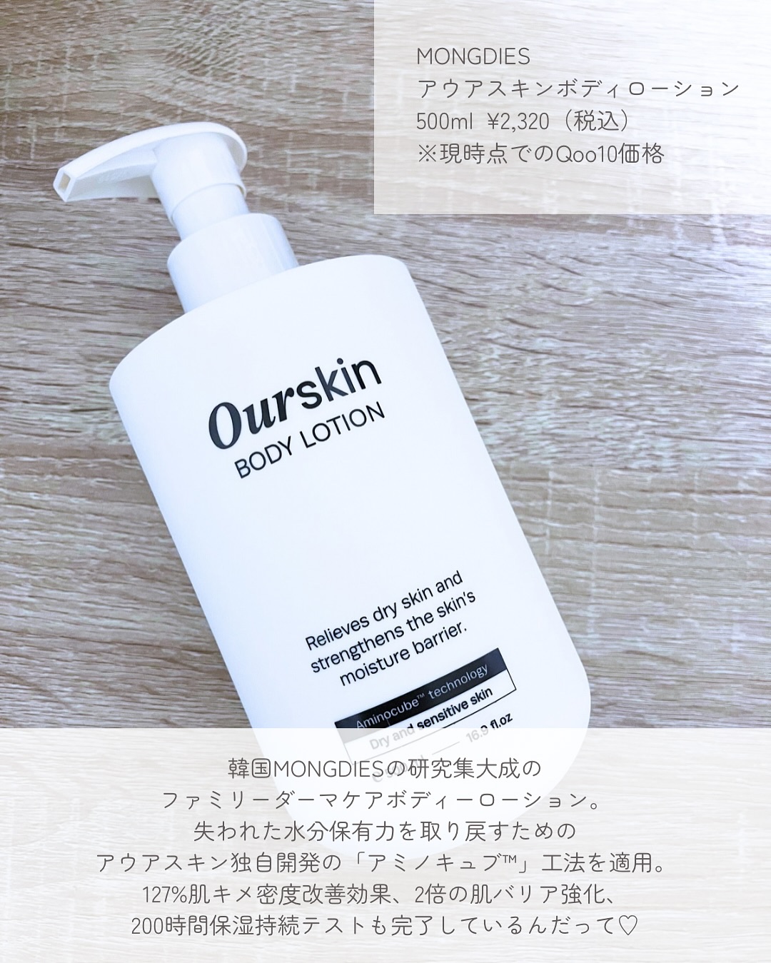 ポンプタイプで、お風呂上がりなど使いたい時にさっと使えて便利です。 なめらかなテクスチャーのボディローション。すっと伸びて、なじんでくれます。 べたつかず、軽やかな使用感なのでこどもにも塗りやすくて嬉しい!爽やかな甘さの良い香りがします。 韓国モンディエスの研究集大成のファミリーダーマケアボディローション。ベビー等級の全成分で赤ちゃんから大人まで使える!
