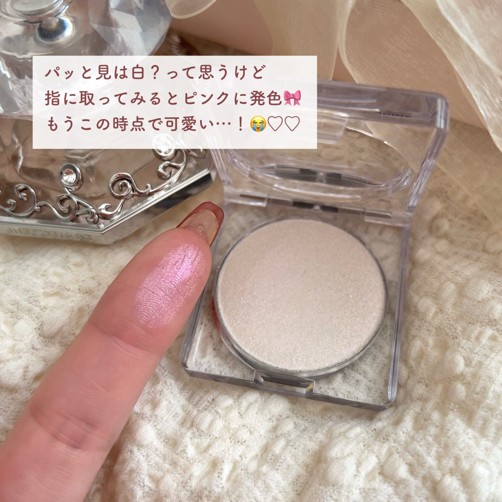 新色は偏光ラメ♡ ピンク大好物なので🤤発売日に買ってきました🛒 見た目白なのに肌にのせるとピンクがしっかり発色してときめき💘 販売情報🗓️ 3月1日ロフト・ショップイン先行発売 3月28日全国発売