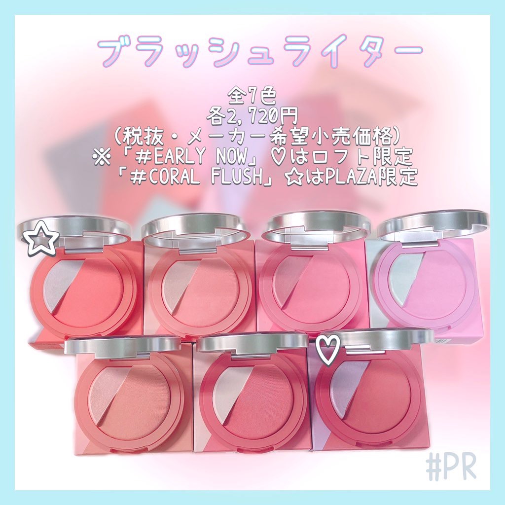 デザインの一捻りあって高さが少しずれてるのわかる⁉️ そして、配色が反対色の物(一見奇抜)と近い色(絶対馴染む)とタイプに分かれていて、自分の好みで選べるよ🩷 見ためと肌に乗せた時のギャップがあるから、ぜひ実物を触ってみて欲しい❣️ 黄ぐすみしなくて何気に推しカラーw あと、#アーリーナウ (ロフト限定)も推し✨