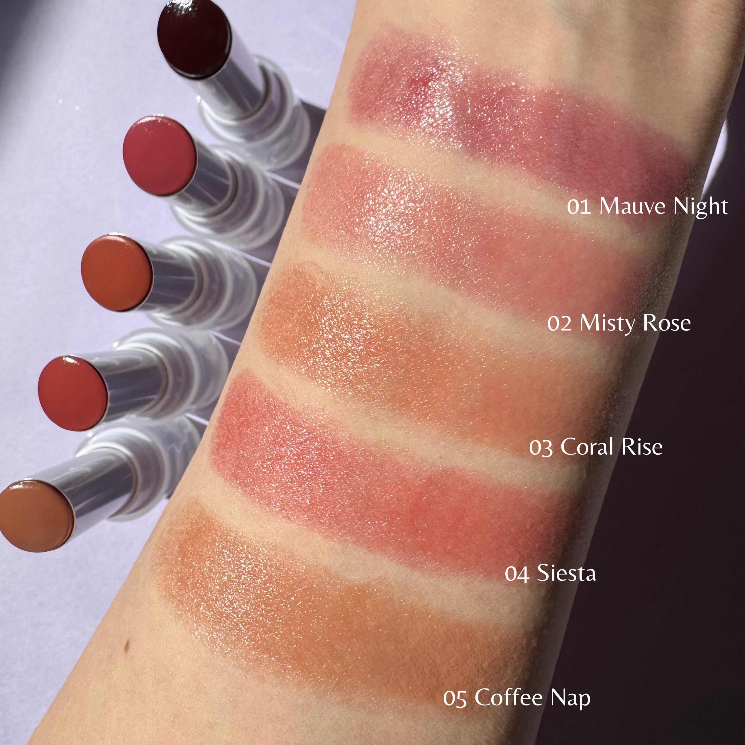 Dr.Gの姉妹ブランド、Healusのリップが可愛すぎるの🥺💓全5色で、ヌーディーなベージュからプラムやローズ系まであるよ🫶🏻01モーブナイト夢うつつな紫色の夜02ミスティローズ夜明け前の幻想的な雰囲気03コーラルライズ朝焼けのぬくもり04シ...