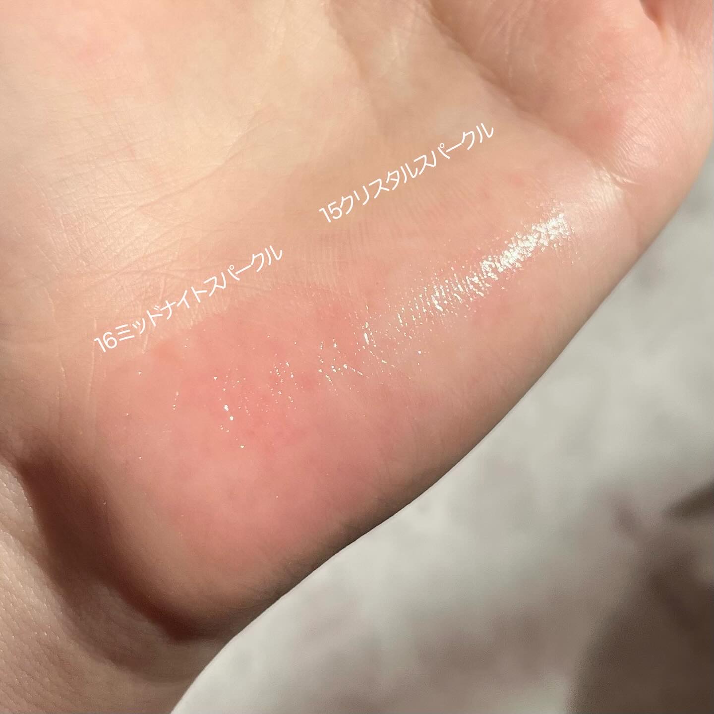グリッターカラーが新発売⟡ プランピング&グリッターでガラス玉のようにぷるんとした唇に 15 クリアベースにライトブルー系のグリッター 16 唇のphに反応するクリアピンクにゴールド系のグリッター プランパー効果で清涼感があるけど痛くはないくらいなのでプランパー初心者にも!