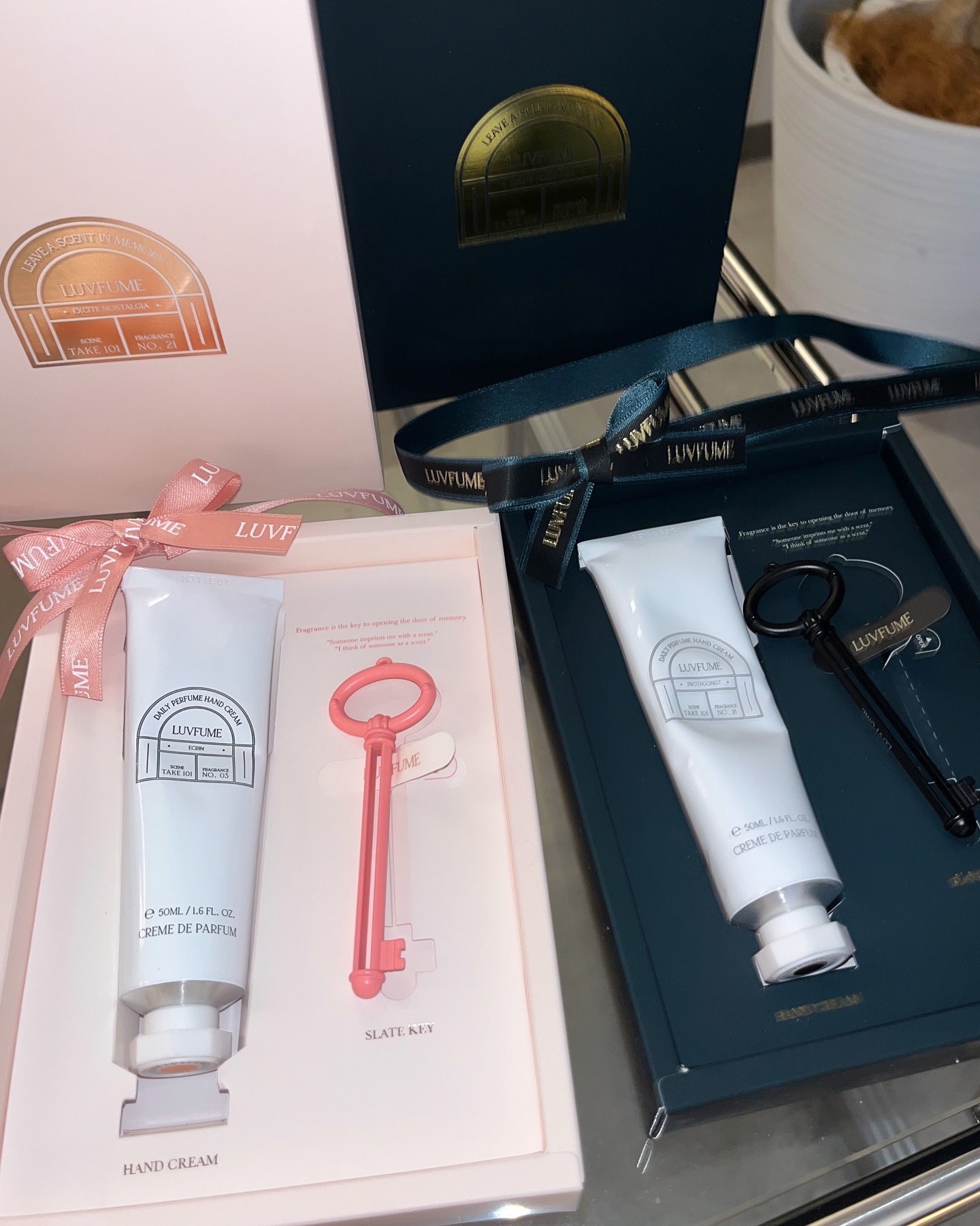 ECRIN → ウッドベースに甘い桃の香りが広がる、心をとろけさせるようなフルーティウッディな香り 🍑🌿 PROTAGONIST → バニラ × サンダルウッドの温もりが包み込む、リッチでセンシュアルな香り 🍦🌲 ハンドクリームをキーリングとしてアレンジできるから、おしゃれに持ち歩ける🎁✨