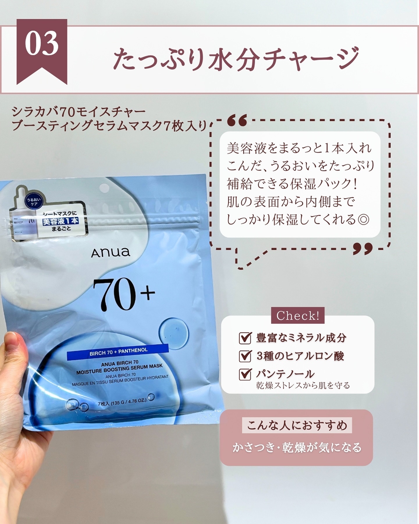 大注目!Anuaパックꕀ人気のフェイスパック3選ꕀ.①Anua/アヌアꕀPDRN100ヒアルロン酸セラムマスクꕀ🫧.話題のPDRN&ヒアルロン酸配合の"水分補給マスク"⸝⋆豪華な美容液がヒッタヒタ!!翌朝プルプルになるし、化粧ノリが良くなる!...