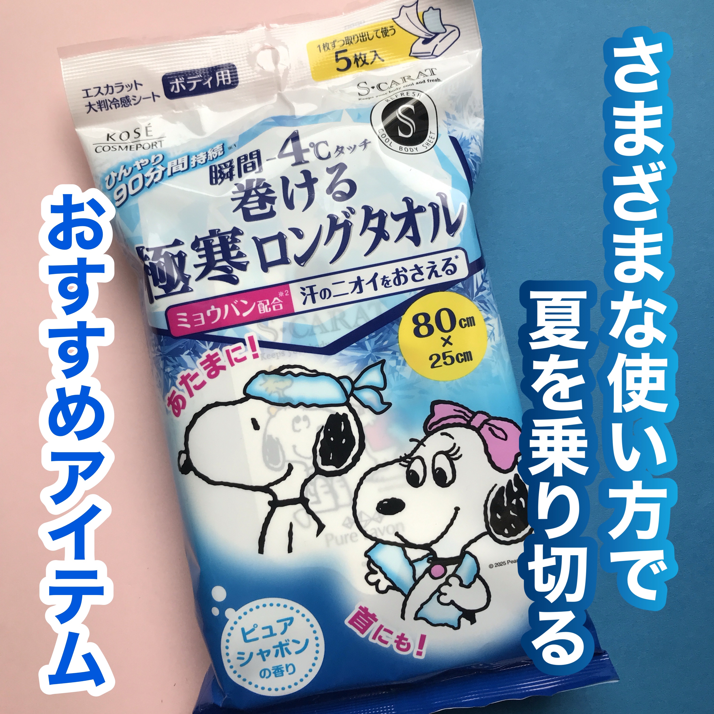 - 瞬間ー4℃タッチ!ひんやりが90分間*持続する極寒ロングタオル。 フェイスタオル級の超大判ロングサイズで、首や頭に巻いて使えるシートです。 ピュアシャボンの香り。 *26℃の室内で90分間肌にのせて使用した場合