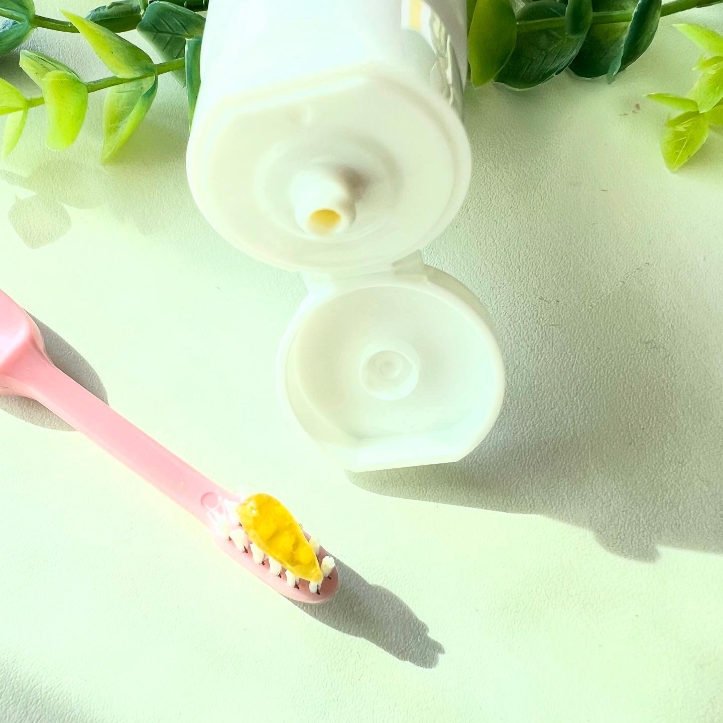 100%食品レベルの成分で作られた歯みがきジェル! ほんのり甘いオレンジ味なので、親子で楽しく歯磨きをすることができます✨ うがいをしなくてもガーゼで拭って完了できるのもありがたいポイント❤️