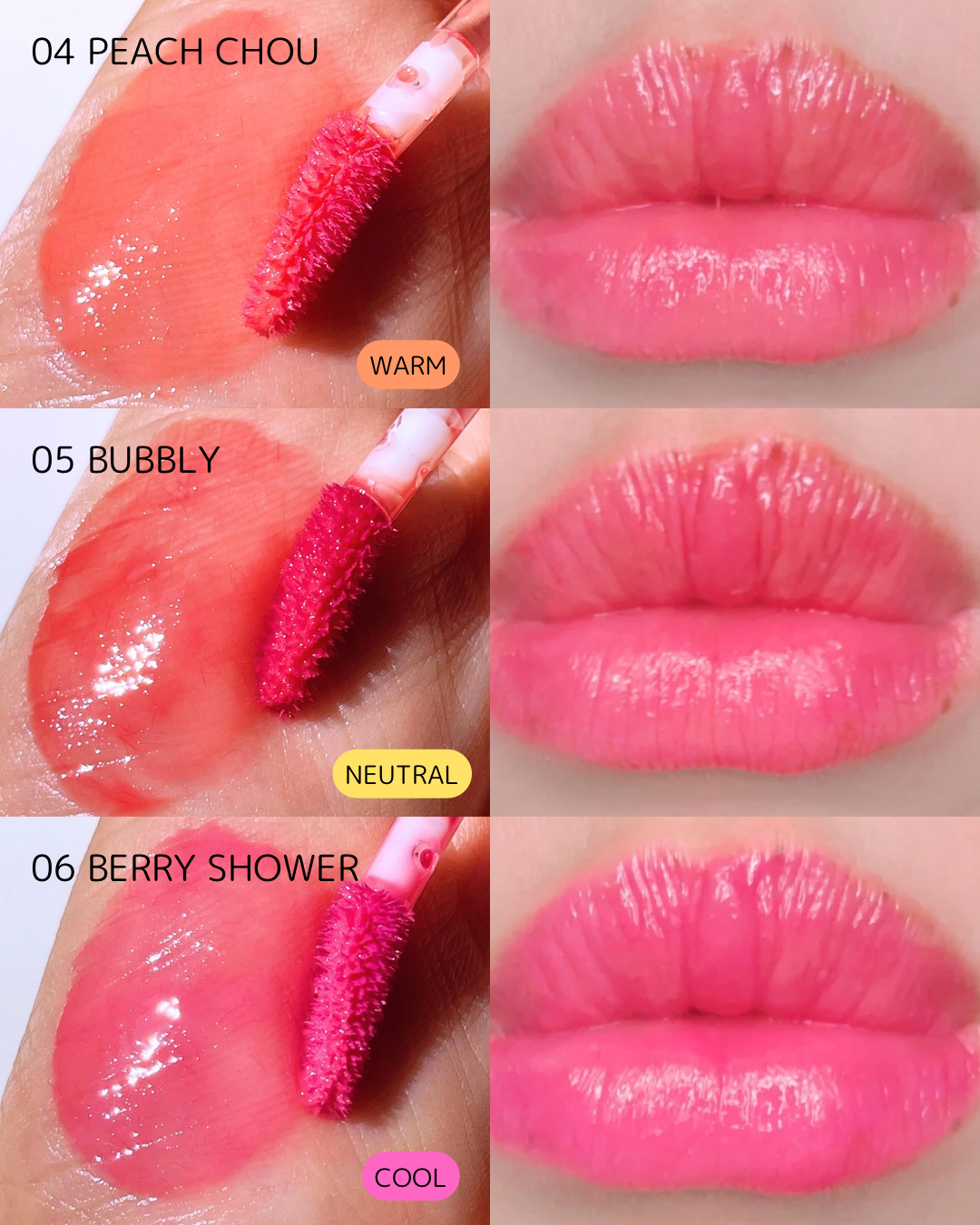 - ほんのりプランピング効果で痛くないぷっくりティント。 もっちりなのに嫌なべたつきがなく使いやすい。 縦ジワがなくなる綺麗な唇を~! ひと塗りで輝く、 澄んだ透明感あふれるぷるんとしたキャンディツヤ🍭 ティントにグロスの長所をプラスしたテクスチャーで、 ベタつかず長時間続く光沢を ✧˖*°࿐