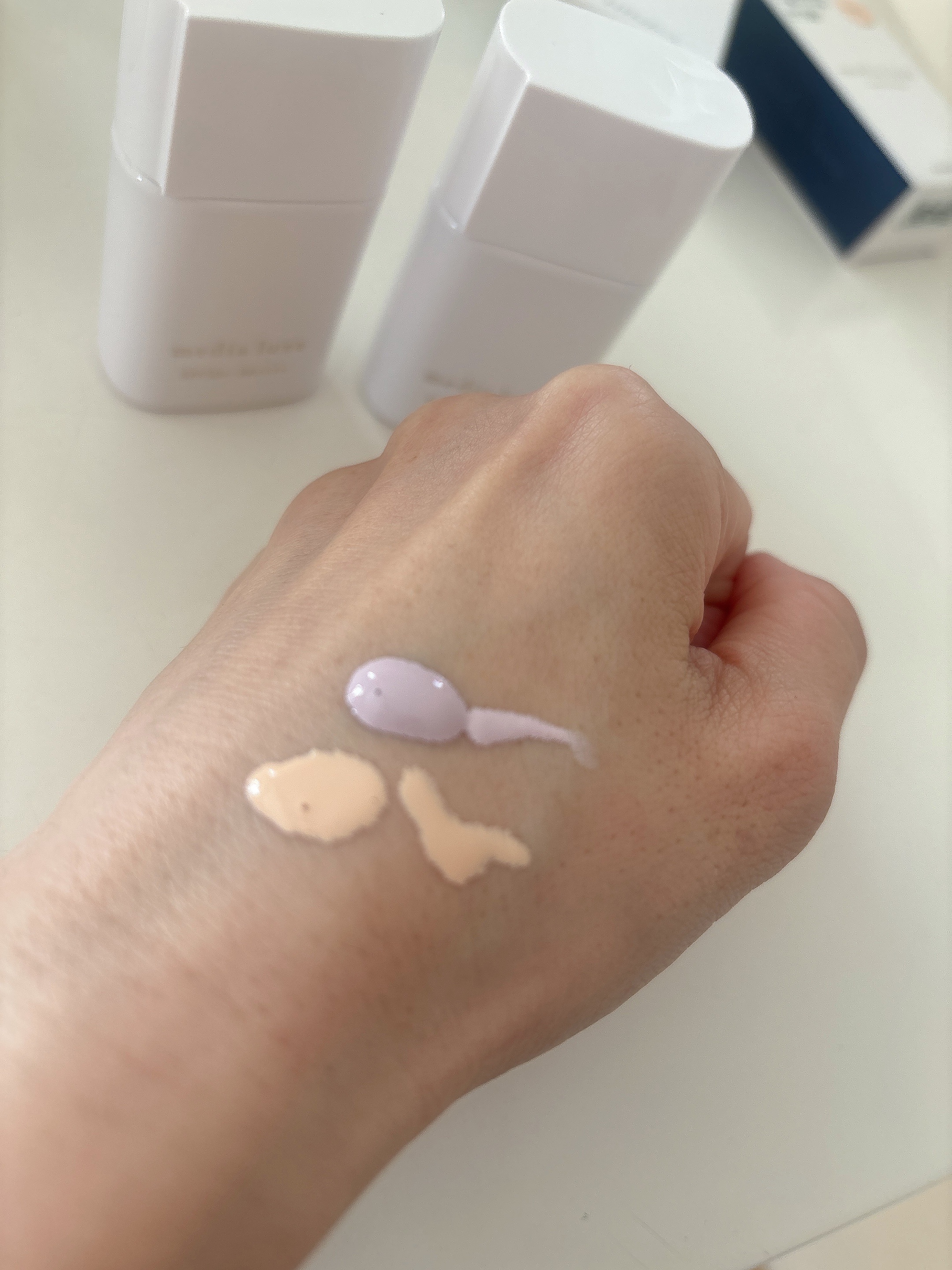 SPF50+・PA++++で紫外線対策ができる化粧下地です。 テクスチャーはオイルっぽく、スルーッとサラッと滑らかに伸びる印象、無香料で使いやすいです。 軽やかでムラになりにくく、肌にフィットする感じが心地いいです。 ベタつきにくい仕上がりで、ベースメイクの土台にいい感じで、ファンデーションもなじみやすかったです。