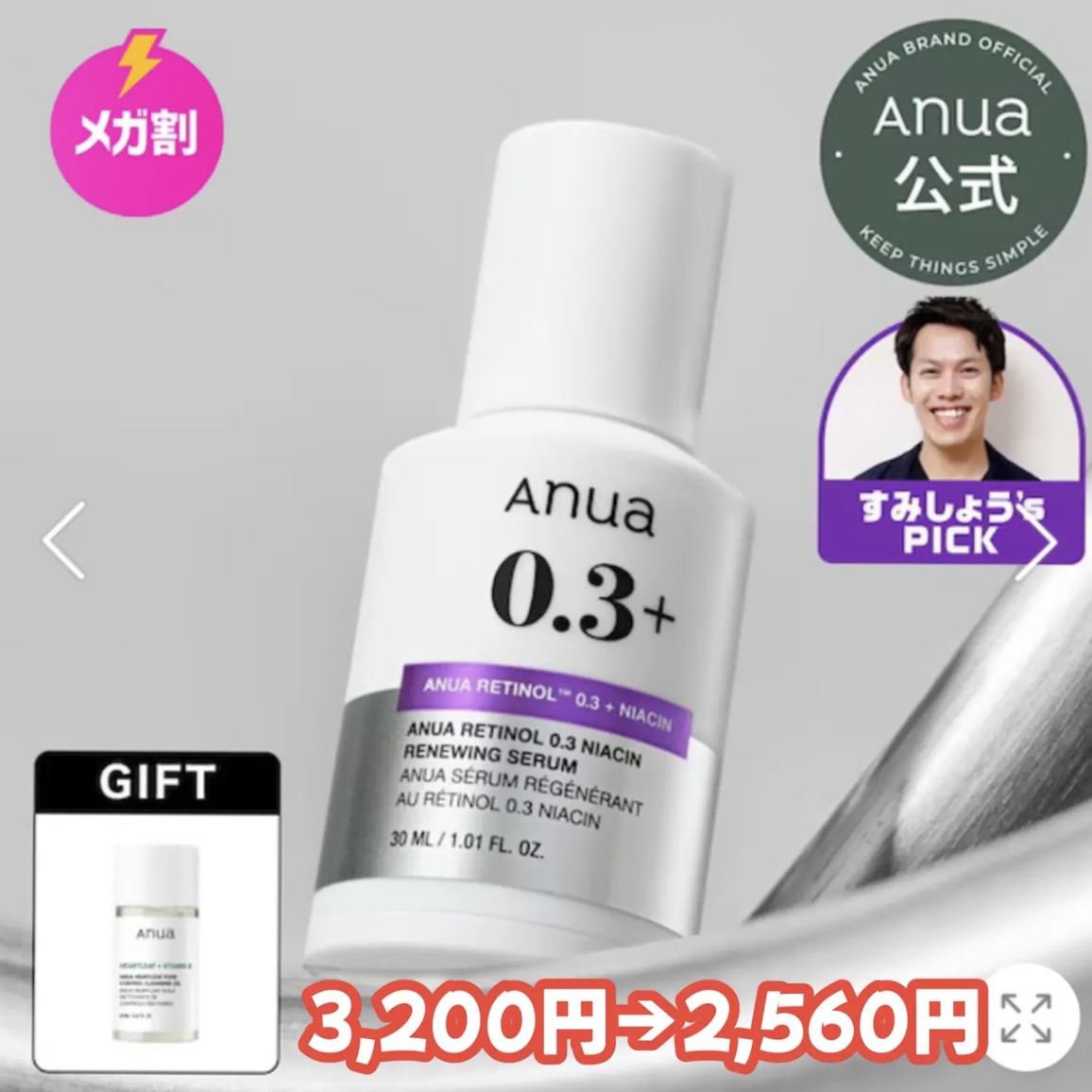 Anua レチノール0.3 ナイアシンリニューイングセラム | 3,200円 |