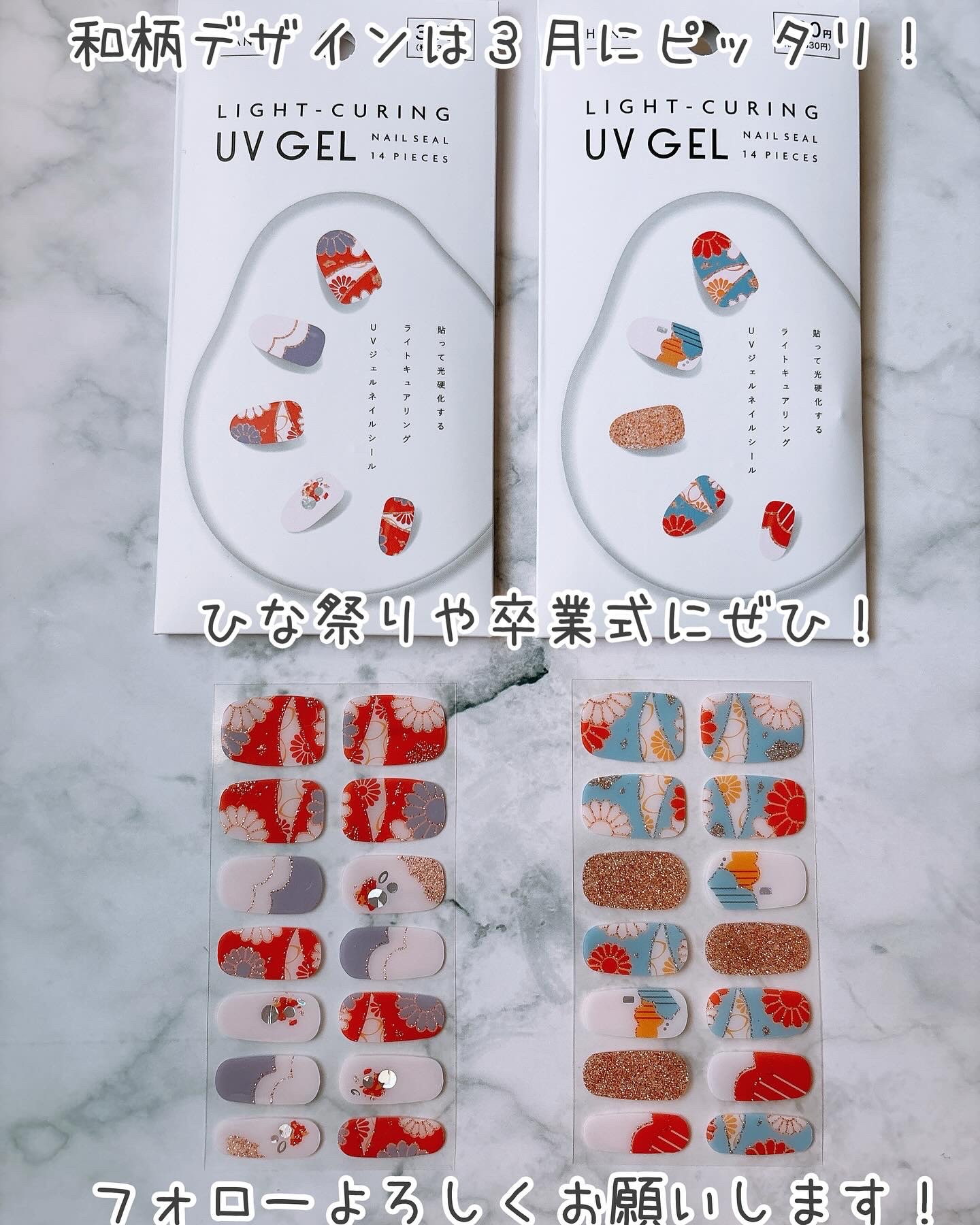 ダイソーは毎年人気の紗々ネイル! 今年はリボンのデザインがお気に入り!貼ってみるのが楽しみです✨ セリアはチョコ以外にもあって、ホワイトデーにも良さそうです! 明るくてかわいらしい雰囲気でした! ダイソーの硬化タイプのブラウン系もいい感じ! 剥がれにくいのでおすすめです✨