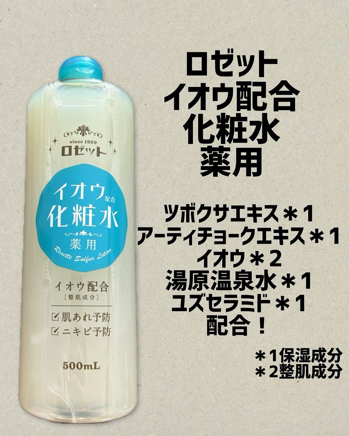 - 【医薬部外品】■薬用で肌あれ&ニキビ予防 有効成分グリチルリチン酸2K配合で、肌あれ・ニキビを防いで肌をすこやかに保ちます。 ●ノンコメドジェニックテスト済み*2 ●敏感肌パッチテスト済み*3 ●無着色料 ●アルコールフリー *2 すべての方にコメド( ニキビのもと) ができないというわけではありません。 *3 すべての方に刺激が起こらないというわけではありません。 ■イオウ*1+4種の美容成分*4配合で肌のコンディションをととのえる イオウ*1と4種の美容成分*4配合で、うるおいを守り、肌コンディションをととのえます。 ●肌のキメをととのえる「イオウ*1」 ●うるおいを守り、肌コンディションをととのえる4種の美容成分 「ツボクサエキス*4、アーティチョークエキス*4、湯原温泉水*4、ユズセラミド*4」 *1 整肌成分 *4 保湿成分 ■高浸透*5でさっぱりみずみずしい使用感 化粧水が素早くなじんですっと浸透*5。肌あれやニキビが気になる肌でも使いやすい、さっぱりした使用感でみずみずしい肌へ。 ●高浸透*5 ●さっぱりみずみずしい肌へ *5 角質層まで ■柚子ヒノキの香り さわやかで清涼な柚子ヒノキの香り。心落ち着くスキンケアタイムを。 ■大容量サイズで、使い方もいろいろ 顔・からだ全身に。バシャバシャたっぷり使える大容量(500mL)で、使い方もいろいろ。 コットンに含ませてふきとり化粧水やスペシャルケアとして、背中のニキビ予防などにも。 \鮮やかなカラーのボトルにも注目/ ボトルはイオウ(硫黄)をイメージしたやわらかなライトイエローに。アクセントカラーとしてイオウ(硫黄)泉やイオウ(硫黄)湖でみられるピーコックグリーンを配色し、鮮やかな色彩のデザインに仕上げました。