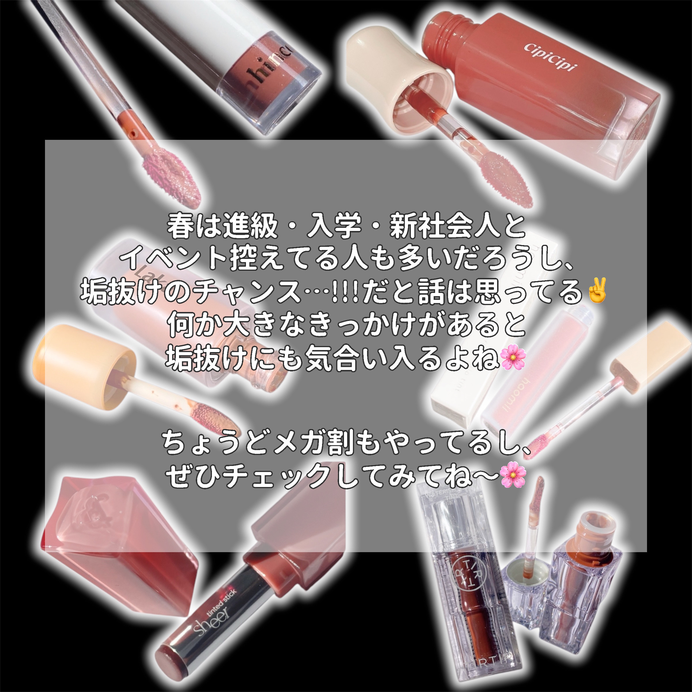 日本限定も発売💡メガ割で1,056円で買えるよ🐰💖!! 新作が出るたびに話題になるグロス🤭💖 私もちょっと前のメガ割で購入✨ 塗った瞬間より、数秒待った方がうるみと艶が増して可愛い🍓🍒