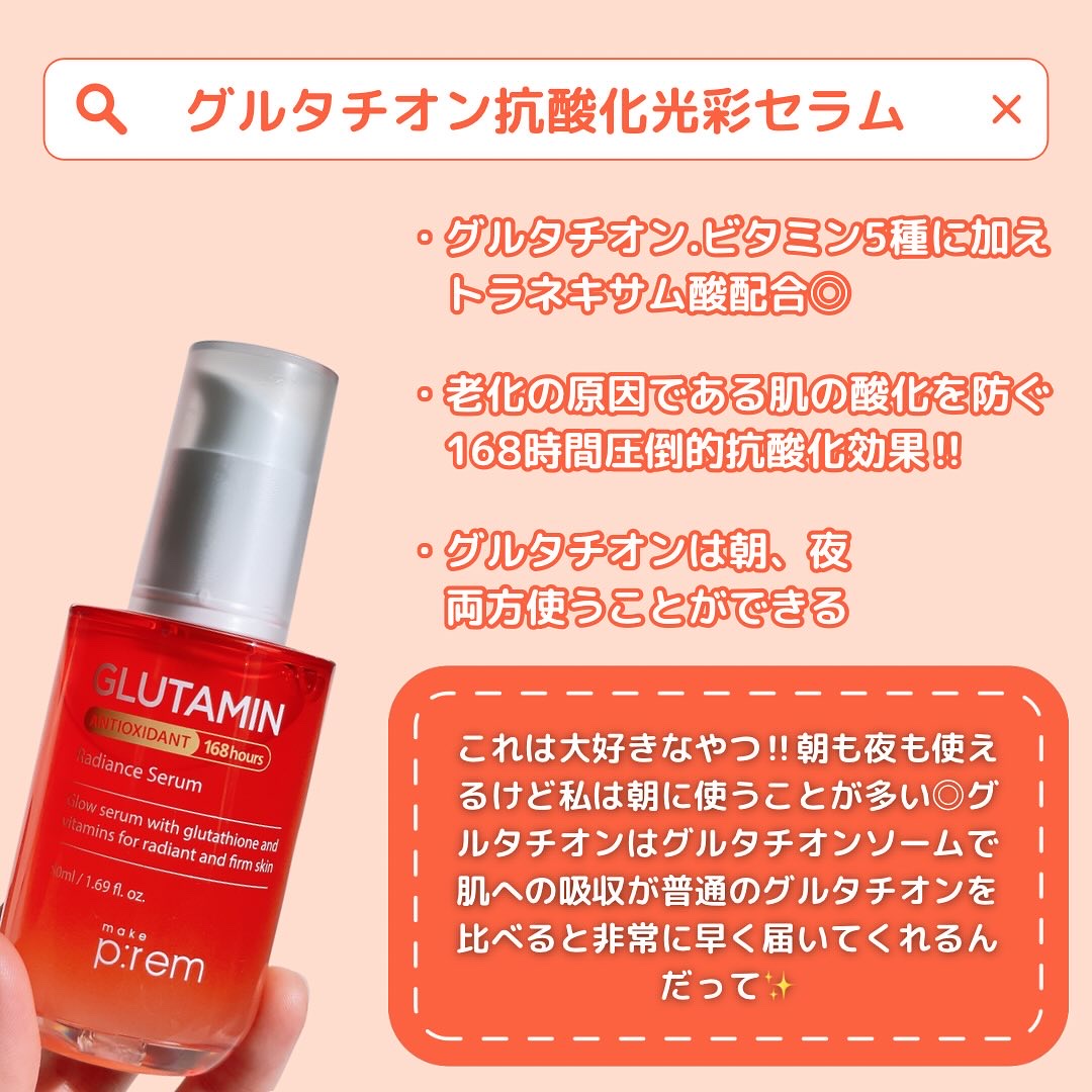 #Qoo10メガ割makepremのグルタミンセラム大好きなんだけど、グルタチオンシリーズから新しく出たPDRNトナーとクリームもめちゃ好きだった!って話です🤭🧡 暑くなってくると特に、抗酸化!!!!🔥ってなるのは私だけじゃないですよね?!🫶...
