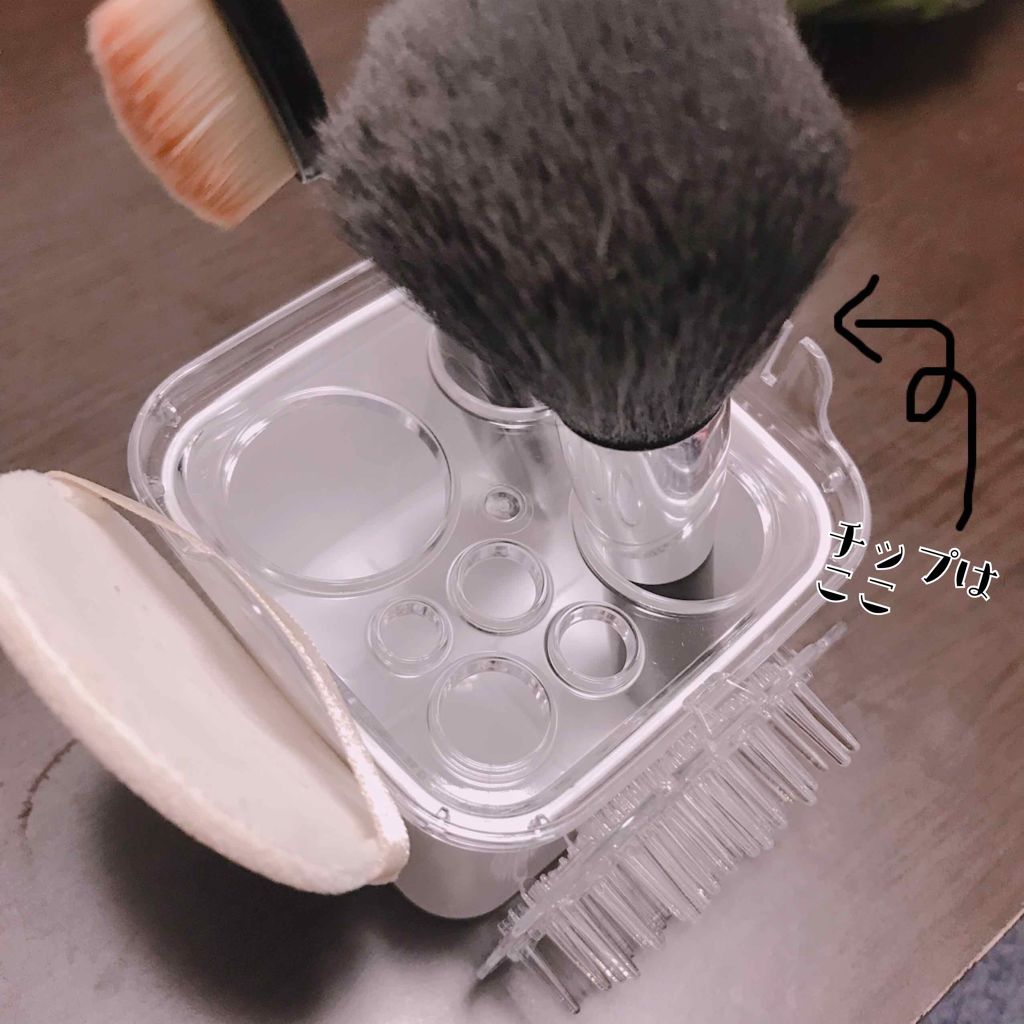 ブラシクリーナースタンドブラシクリーナーと干すためのスタンドが1つになったものです。メイクブラシだけでなく、チップとパフ、立体パフも干すことができます。本体の白い容器にぬるま湯で薄めた中性洗剤や専用の洗剤を入れ、付属の底板にブラシを軽く押し当...