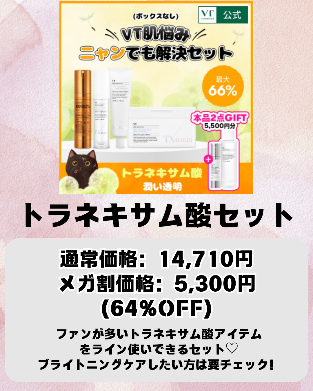 VTからめちゃめちゃお得なセットがでてるのー!!! ♡PDRNセット 通常価格:16,940円▶︎メガ割価格:5,800円(66%OFF) 他にも特典として、こんなプレゼントがあるよっ!