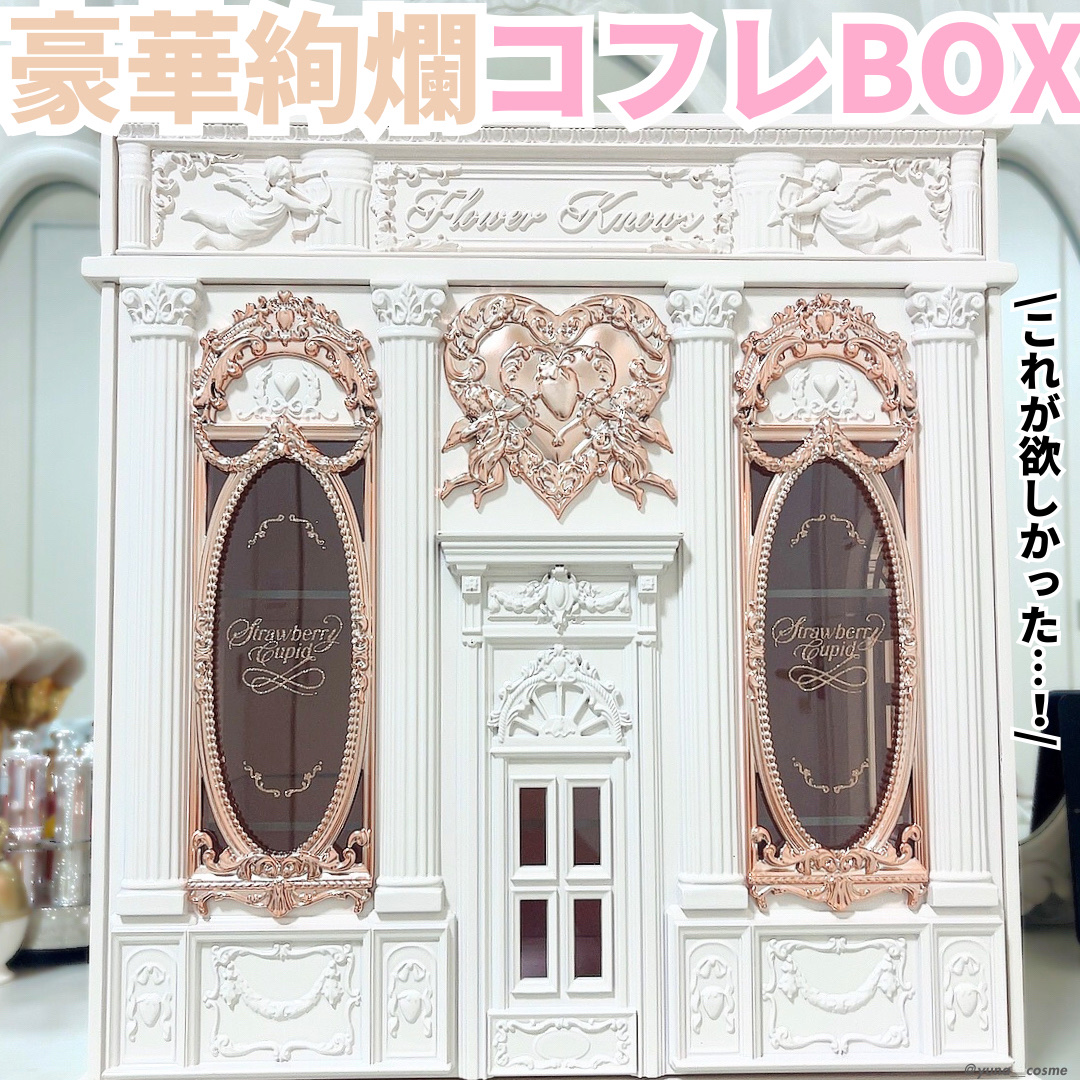 もう可愛すぎてヤバイ❣️ 早く化粧品入れて飾りたいのですが、フラワーノーズのallinBOXのケースが今回のも含めて全部で4個になってしまったので、今置く位置を考え中です🤔💕 小窓からちゃんと中が見えるようになっていて感動🥹❤️ 今回のallinBOXは買って良かったとかなり思います🥰