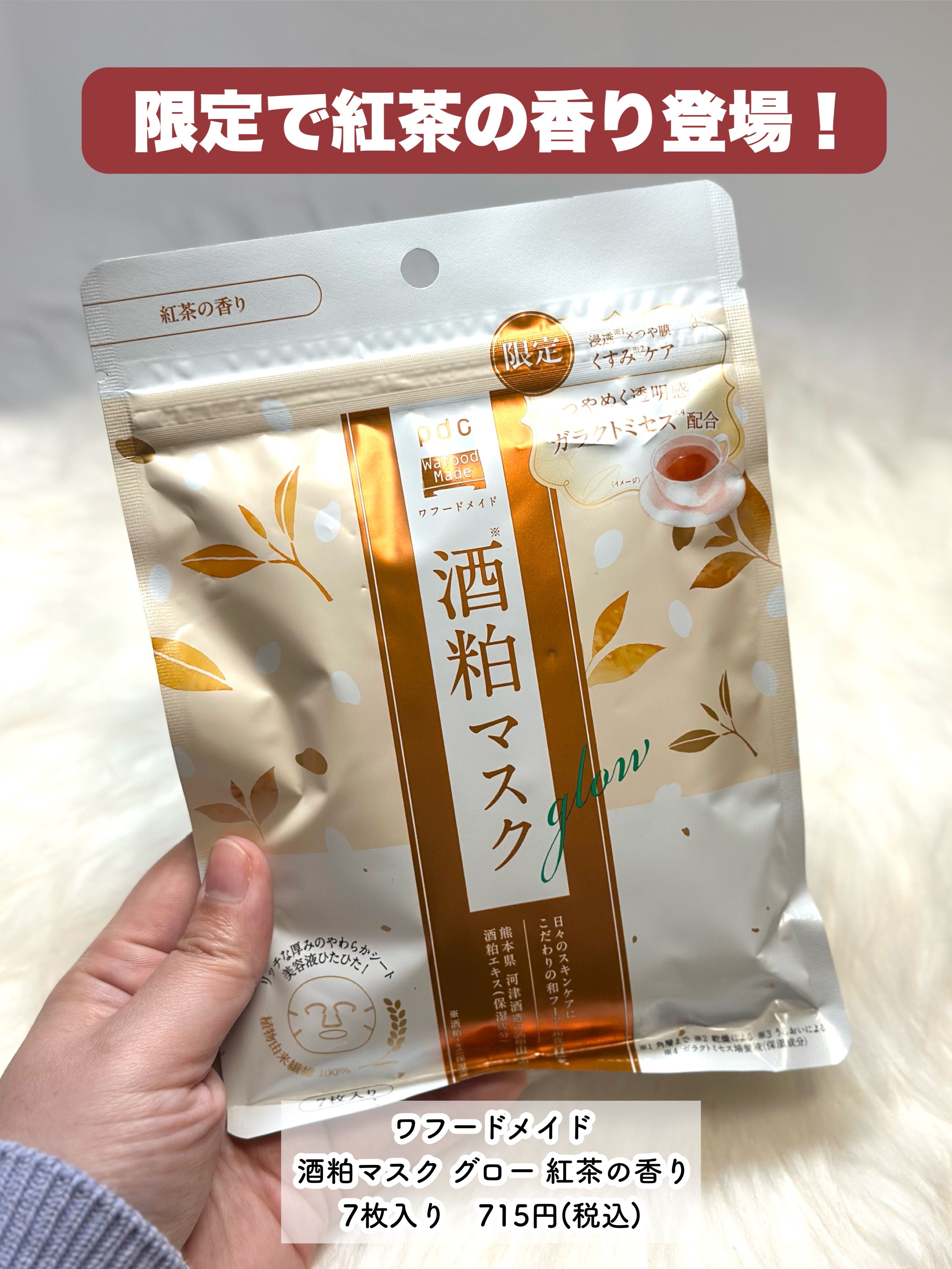 pdcさまからいただきました【紅茶の香り】で包まれて幸せになれるパック☕️🫖透明感のあるツヤ肌になりたい方にオススメベタつかないし毎日使いたい🤍限定だから見付けたら絶対捕獲して#pdc#ワフードメイド#酒粕パック#紅茶の香り#限定#シートマス...