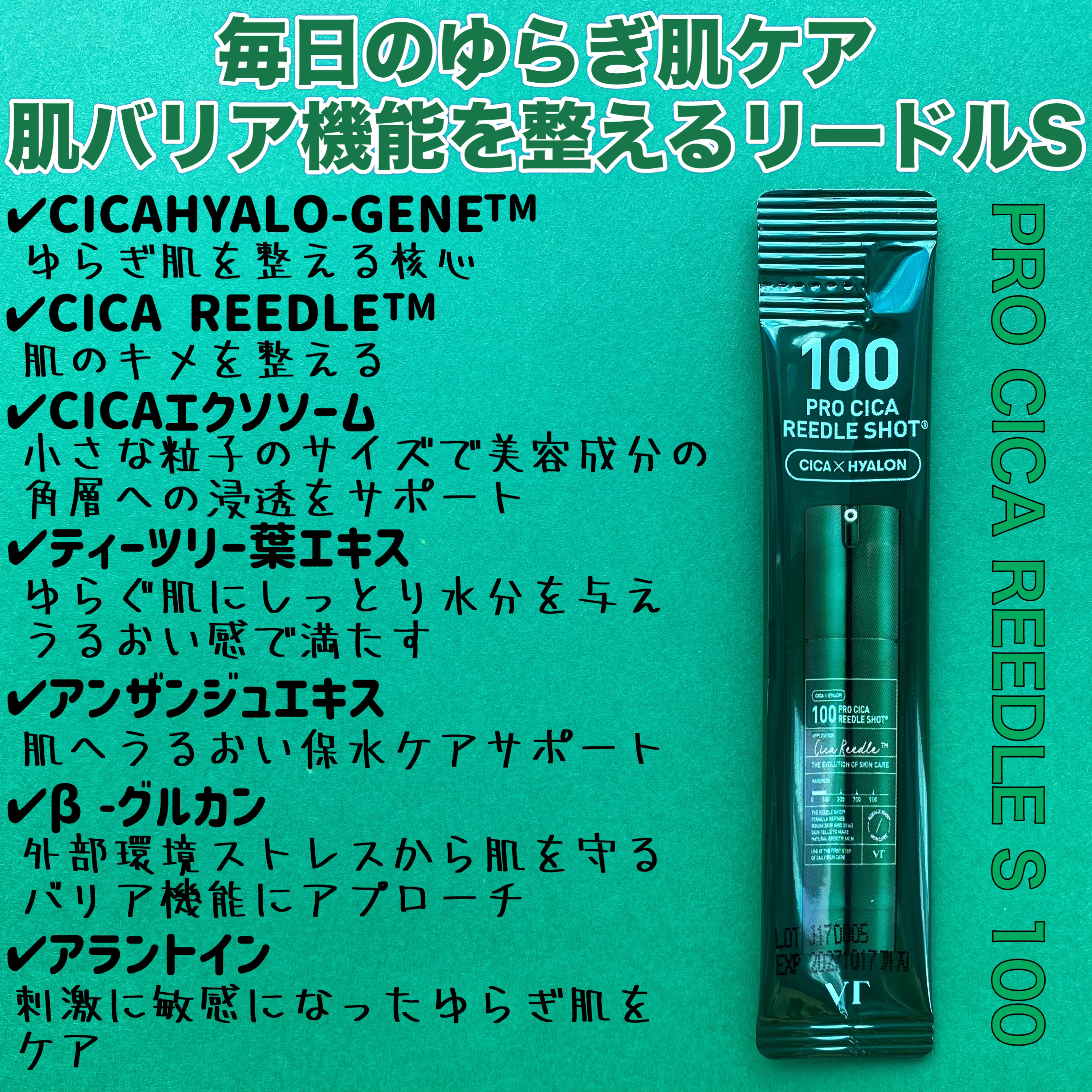 VT様の巨大リードルショット頂きました🥰✨ 中には9種類の個包装リードルショットが5袋ずつ入ってます✨ 肌本来の持つ力と美容成分の届け方に着目。浸透力の落ちた肌でも角層まで美容成分を届け、肌本来の美しさを保ちよりスキンケアの浸透に働きかける商品としてCICAと天然マイクロニードルの組み合わせ開発しました。 個包装なので持ち運びしやすいのが良いですね✨ なめらかなテクスチャが肌にしっかり馴染みました🙌