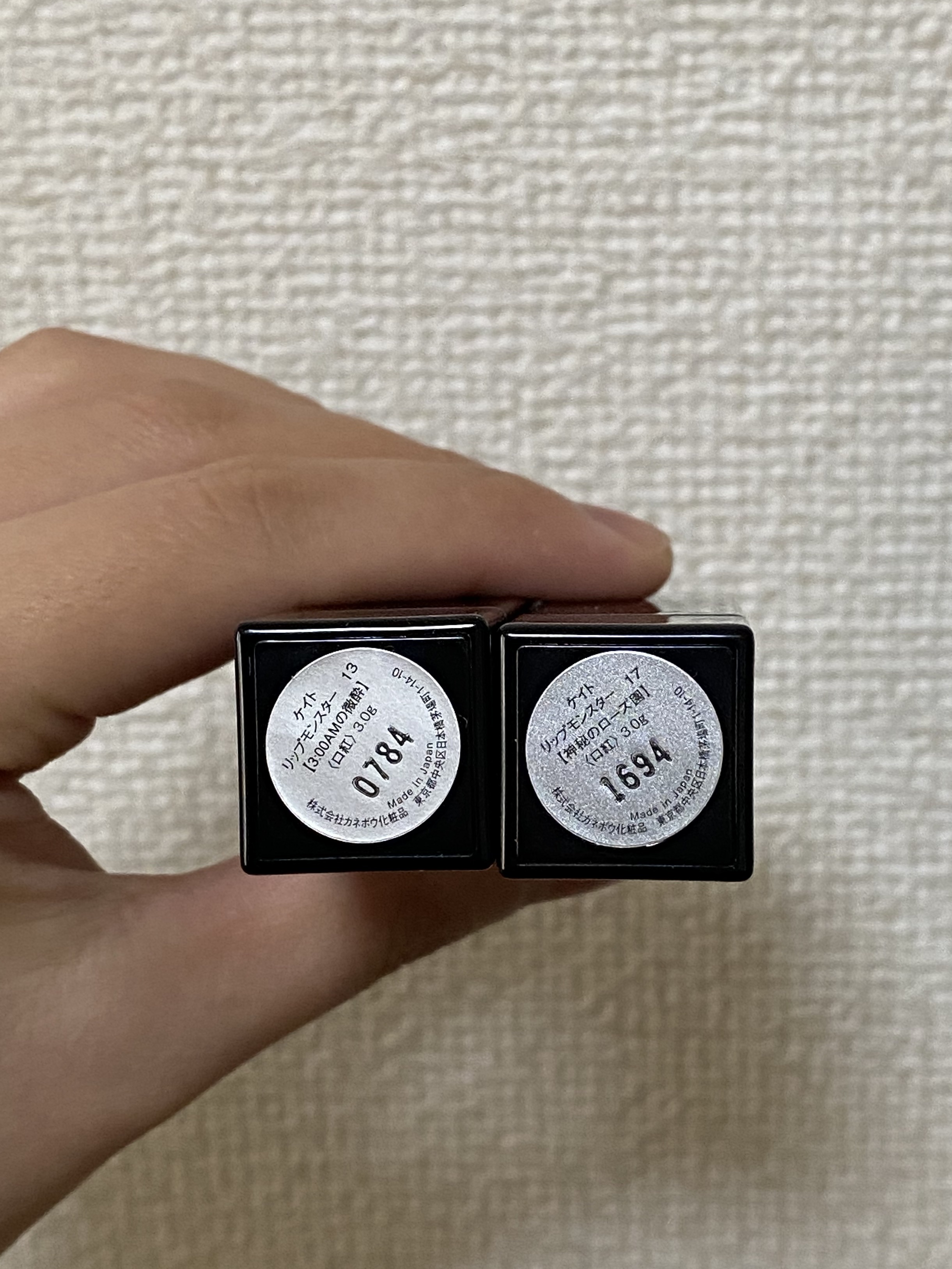 00番のノーネームは オンラインストアで4本買った人には 先着で買える限定リップだったと思います!✨️ 前より1本あたりのお値段は 高くなったけどその分前よりも 美容成分が多く配合されているらしいです!☺️ 下の部分が磨りガラスっぽくて よく見ると中のリップの色が分かります!