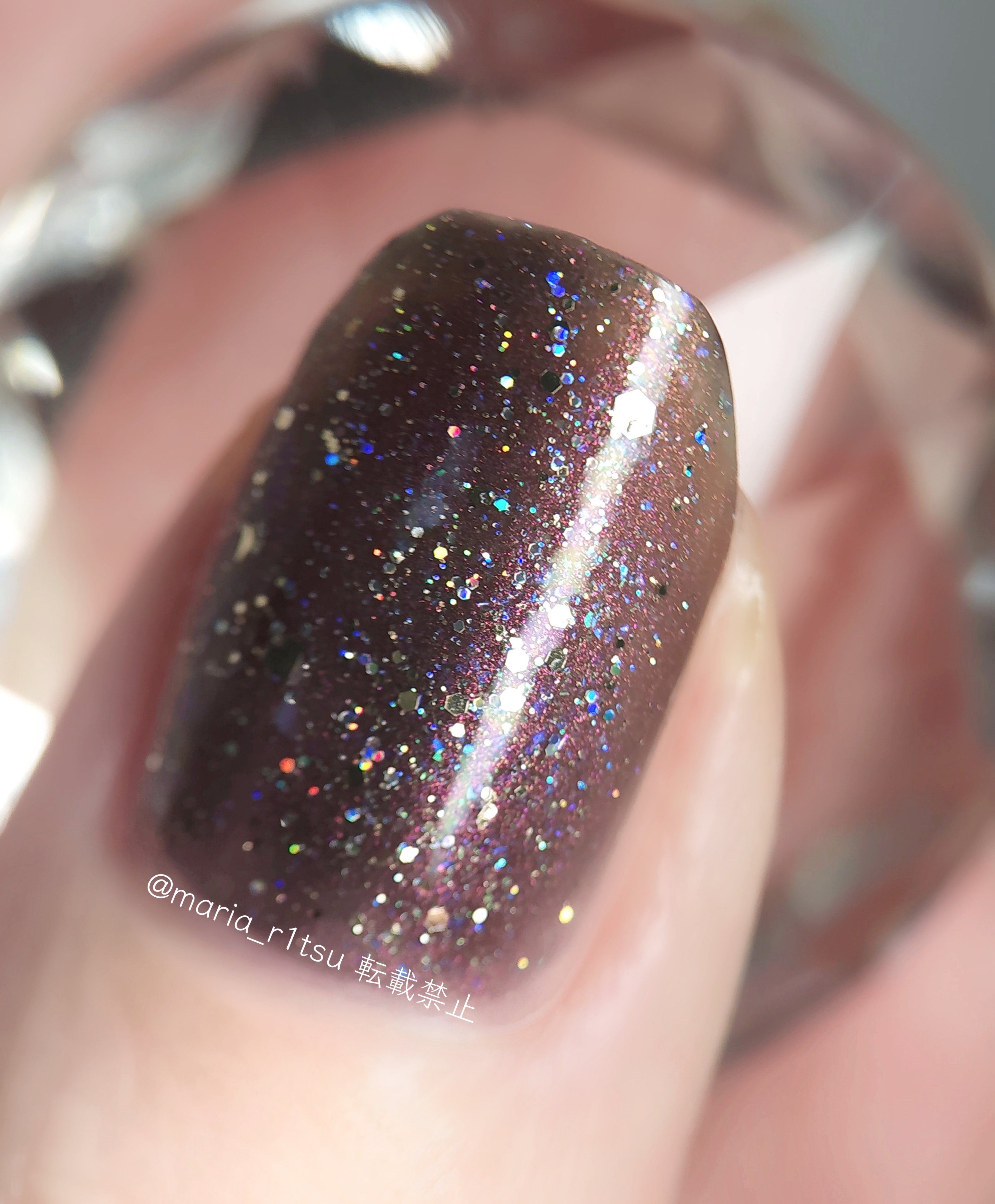 こちらは春コレの第1弾で、シアーなベースカラーにラメが美しいネイルポリッシュです。 細筆なのですが程よいコシがあるので、ボトル縁で扱いて広げると綺麗に塗れます。 シアーホワイトにライトグリーンのラメがたっぷり入っていてとても美しいです。 シアーなピンクブラウンに青ラメがチラチラして綺麗な色です。 発色がシアーだからか、重たくならず上品に仕上がります。 澄んだダークブラウンに多色ラメが時折きらりと光ります。 ほんのりと華やかさを添える多色ラメと、シアーな色味のおかげでダークブラウンでも重たくなりすぎません。