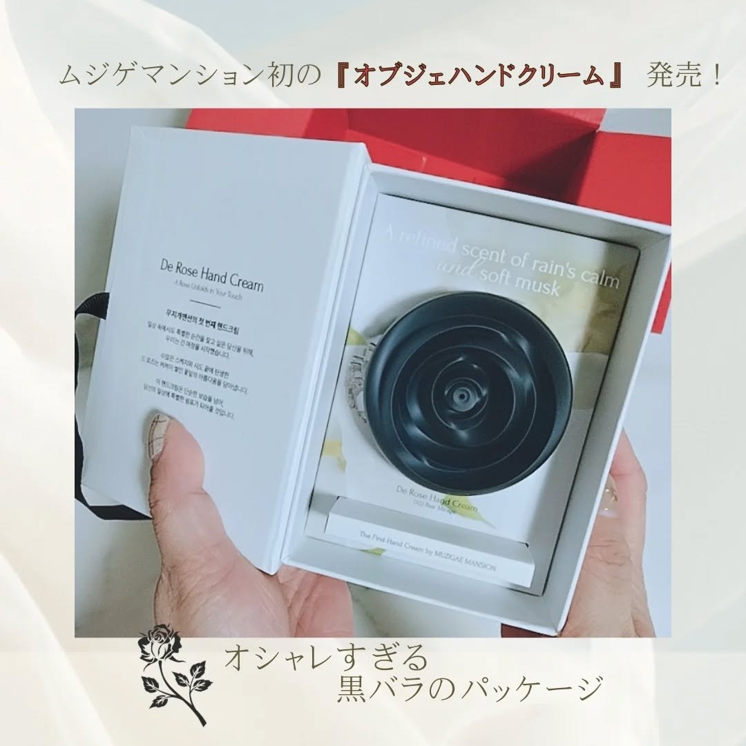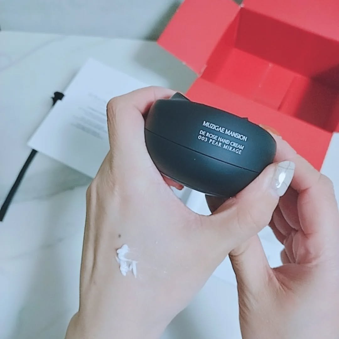 ムジゲマンション初のオブジェハンドクリーム🌹 ✅サラッとしたベタつきのないテクスチャー ✅保湿成分20%配合でしっとりとした保湿感 ✅使った後の手元がほのかに香る 今回使用したのは003 Pear Mirage 爽やかさと大人っぽさが感じられる香りだったよ♩ 黒バラハンドクリームなんて今まで見たことないし、オブジェと同じパッケージで、プレゼント用にも超おすすめ♡