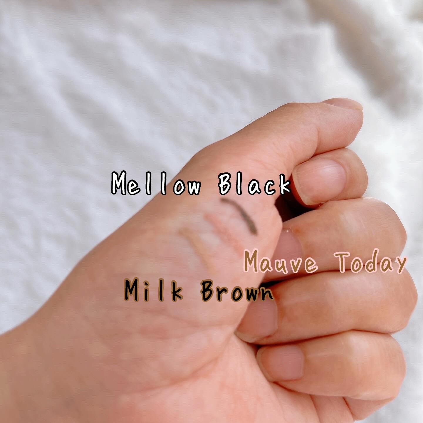 柔らかくなめらかな描き心地でスルスル描けて擦っても全然ヨレなくてぴたっと密着してくれます✨ ミルクブラウンをアイホール全体に塗ってメロウブラックをアイライナーにムーンライトオーロラを涙袋にメイクしてみました! 他のカラーもかわいくて豊富なのでぜひチェックしてみてください✔