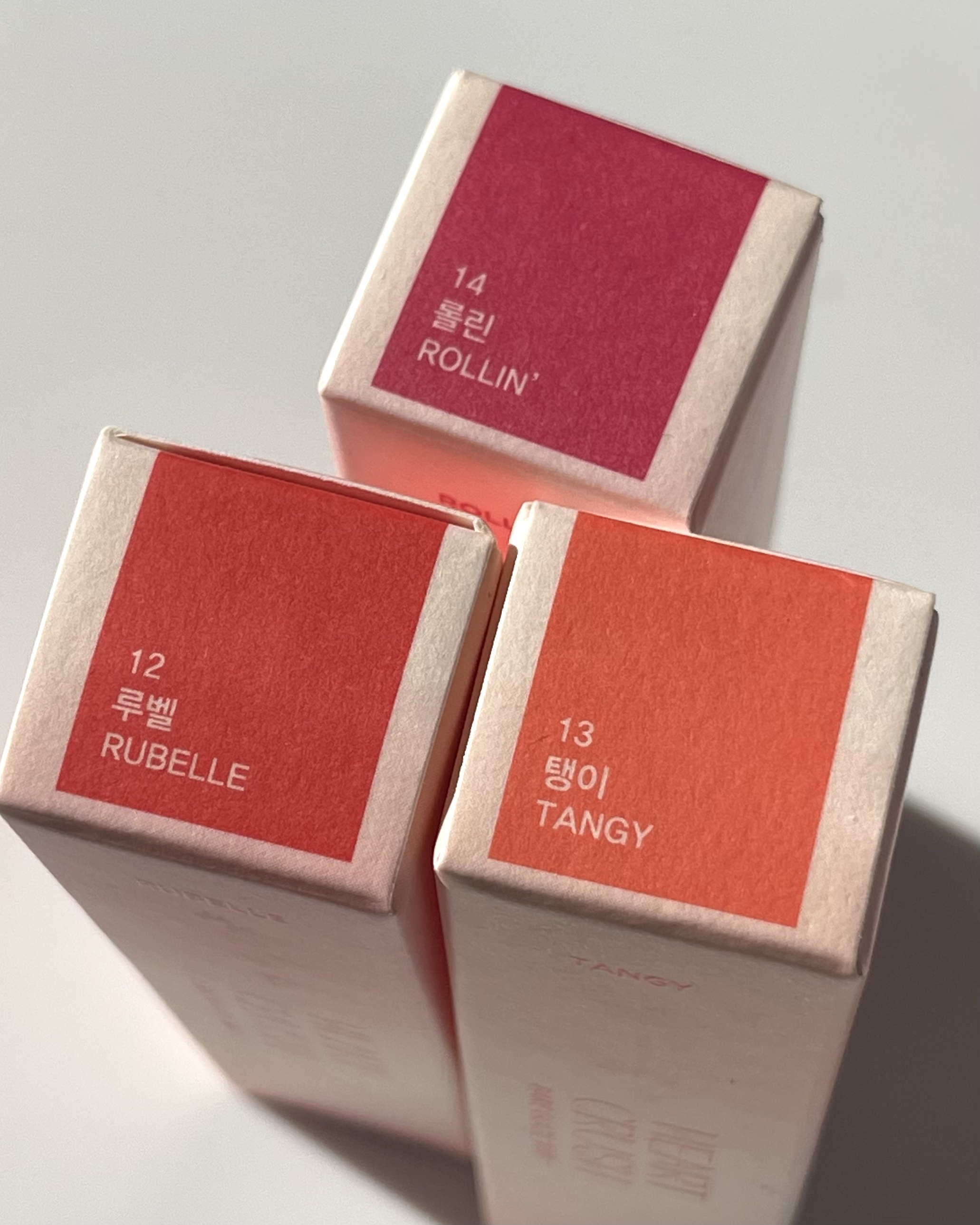 くすみ感の少ない澄んだカラーで、爽やかさを感じる3色🪄︎︎🫧 春に大活躍しそうですฅ•ﻌ•´ฅ 12 RUBELLE 唇の上に生き生きと湧き上がる澄んだレッドブロッシング 13 TANGY 甘酸っぱさが弾けるマンゴーコーラル