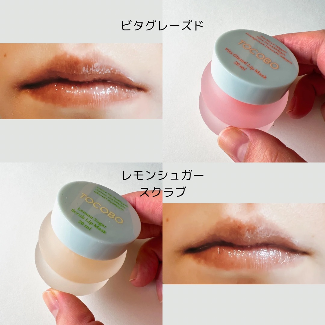 夜の間に唇の角質を落ち着かせるオーバーナイトリップマスクのビタグレーズドとレモンシュガースクラブと唇の角質や縦じわをカバーするプランピングリップオイル✨ 特にレモンシュガースクラブの爽やかなレモンの香りが私は好き🫶 オーバーナイトリップマスクの後にリップオイルを使うとつやつやつるん!とした可愛いリップが作れるよ😍