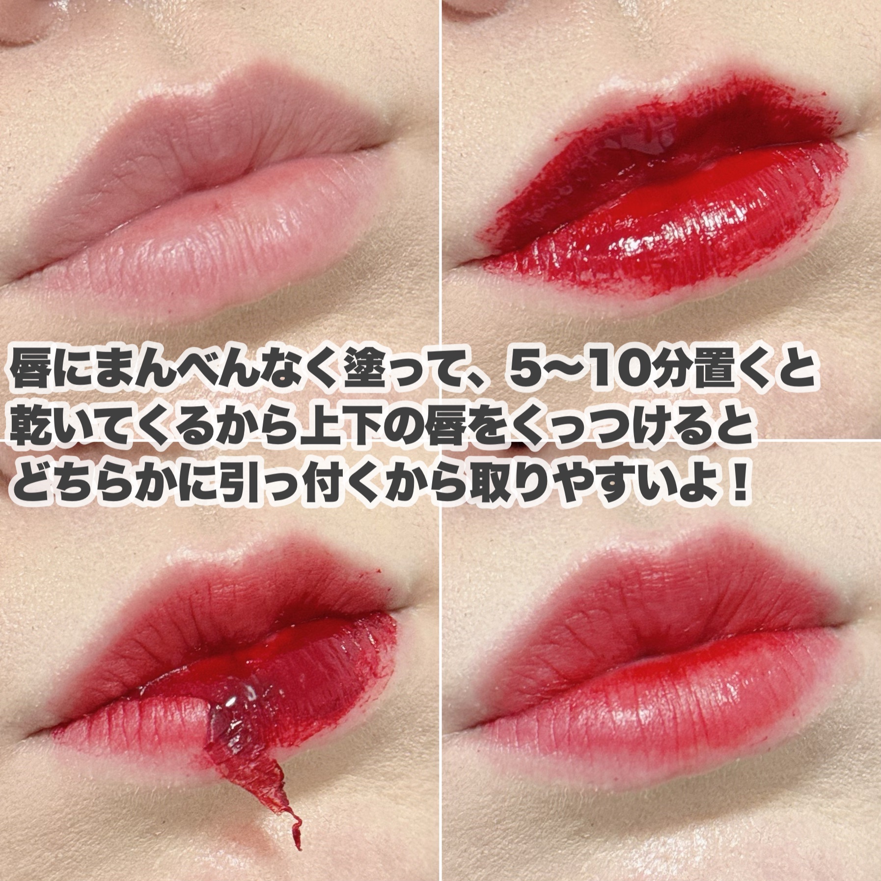 シールのように塗って剥がすと唇が鮮やかに染まるピールオフタイプの新感覚リップアイテム💄 001のラファーは、ナチュラルなレッド❤️ グレープ味のグミのような香り🍇 ✔︎鮮やかな発色 ✔︎高い持続力 ✔︎ウォータープルーフ ✔︎プランピング効果 ✔︎栄養&保湿ケア ✔︎シリコンアプリケーター